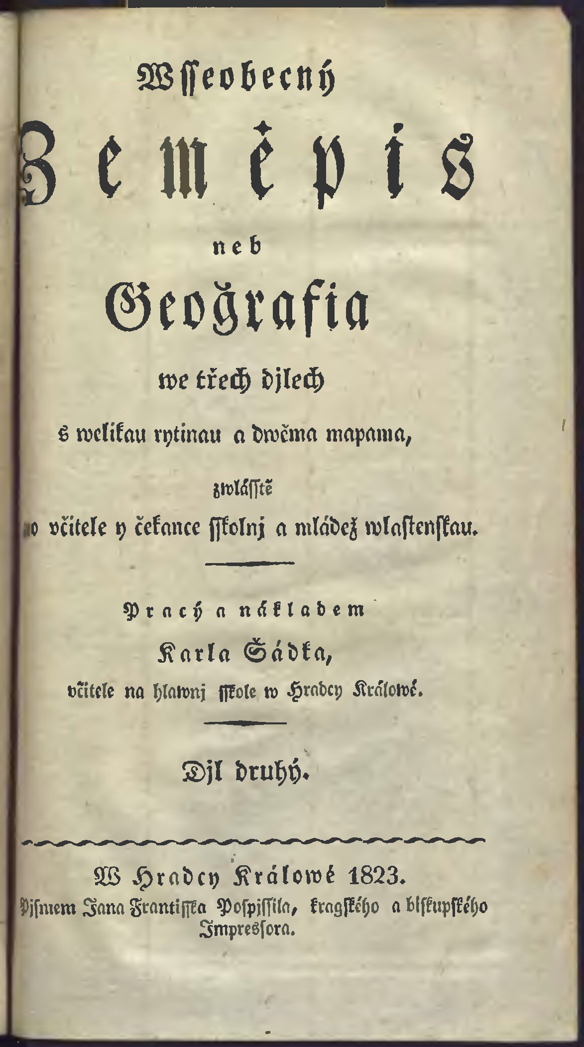 svazek - Wsseobecný Zeměpis, neb, Geografia we třech djlech s welikau rytinau a dwěma mapama, zwlásstě pro včitele y čekance sskolnj a mládež wlastenskau