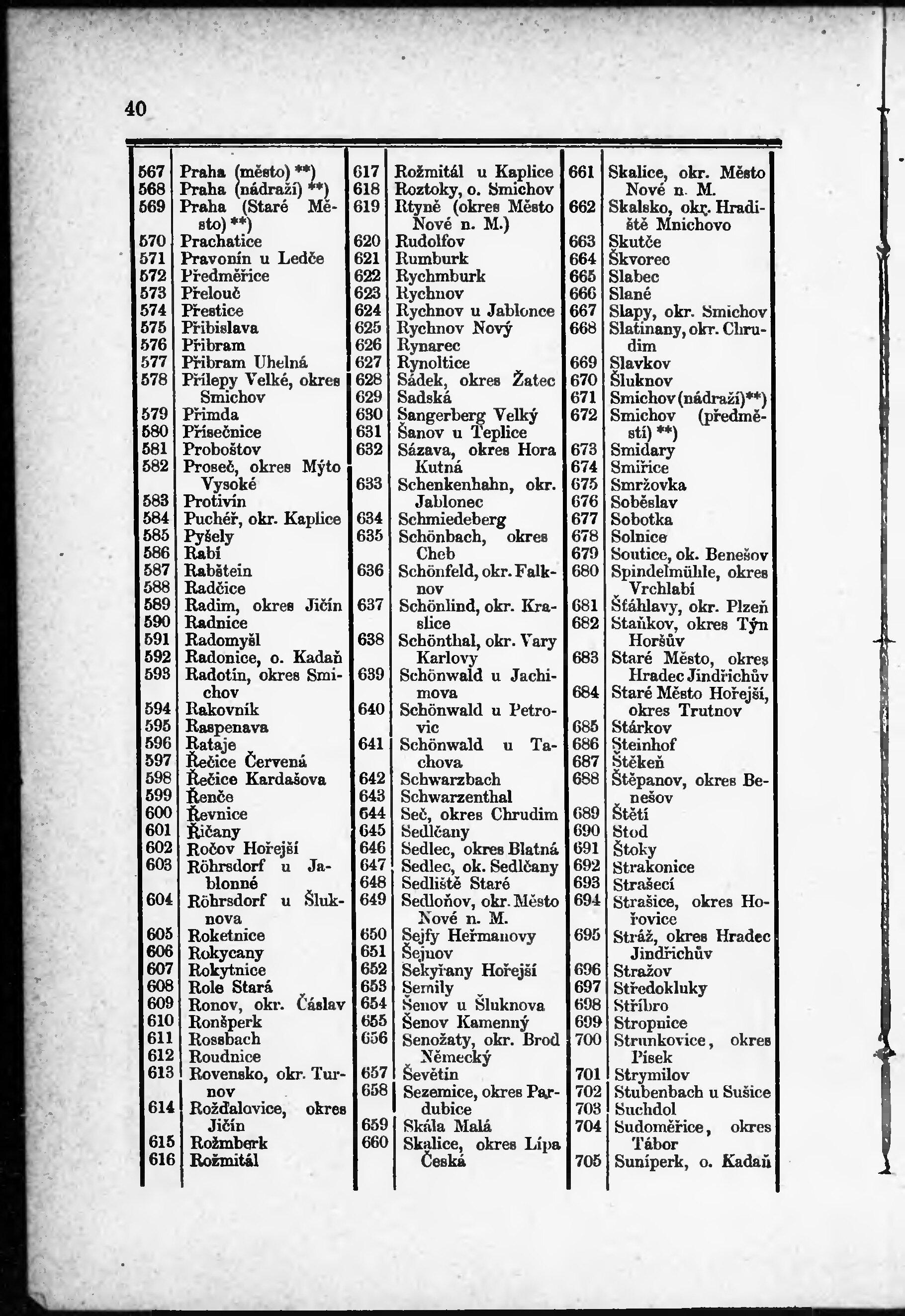 Seznam míst v kralovství [sic] Českém