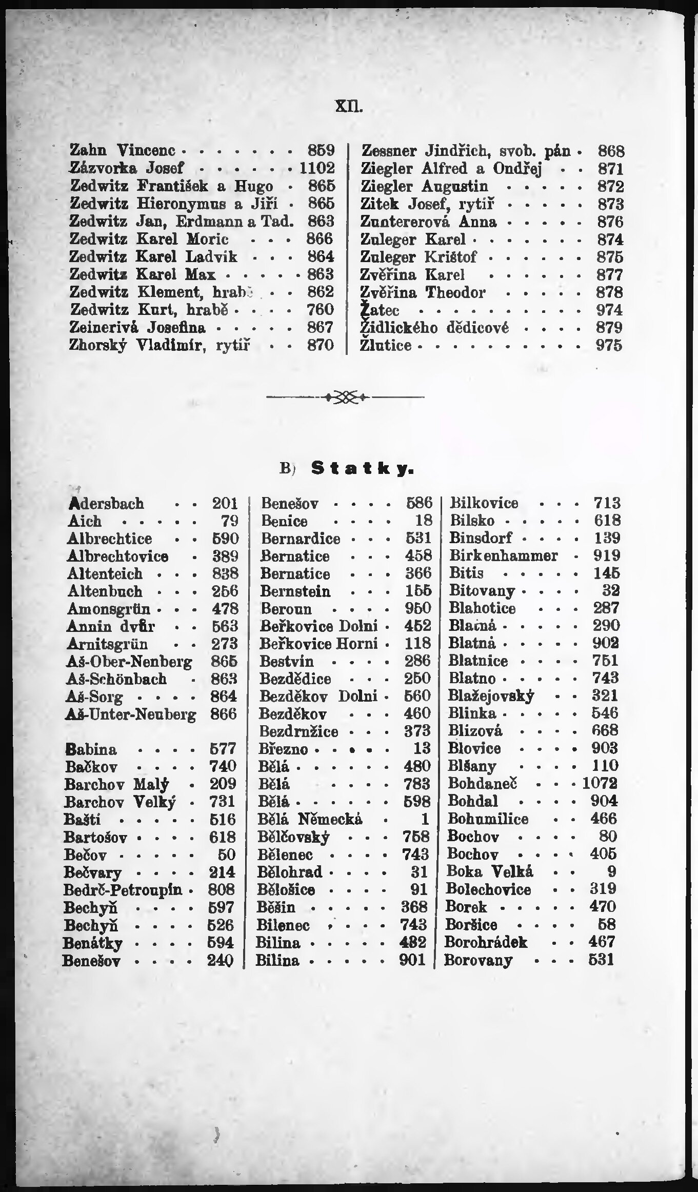 * Číslo stránky: XII Typ stránky: rejstřík