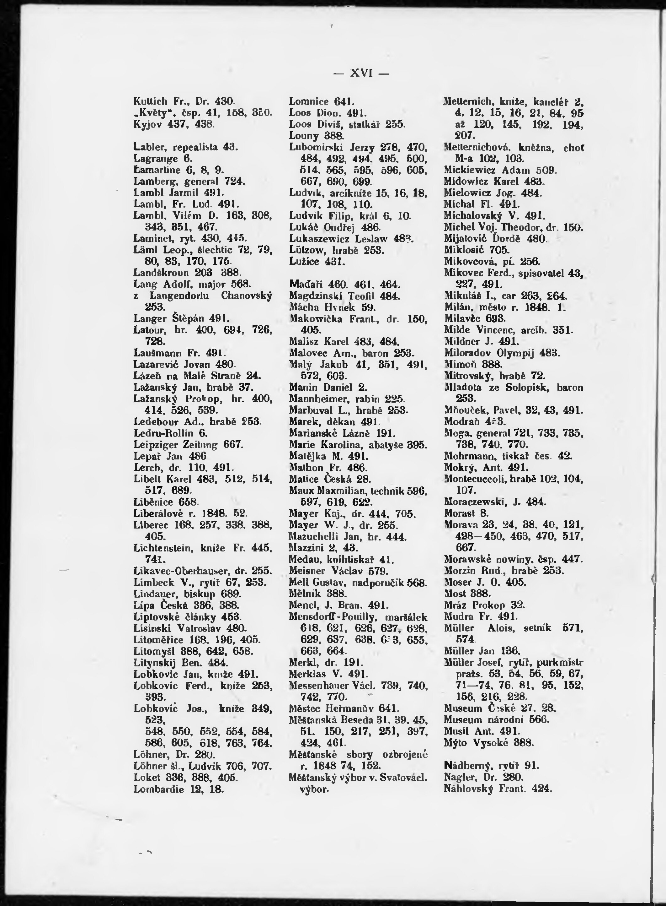 * Číslo stránky: XVI Typ stránky: rejstřík