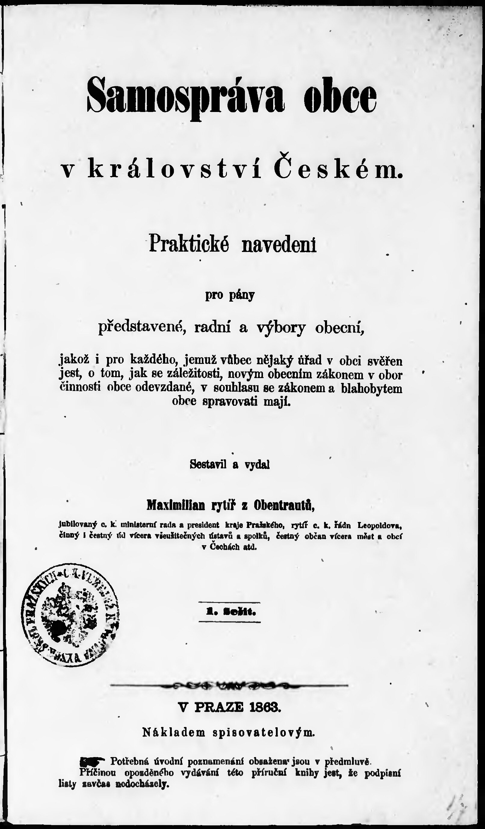 * Volná část monografie: svazek - Samospráva obce v království Českém