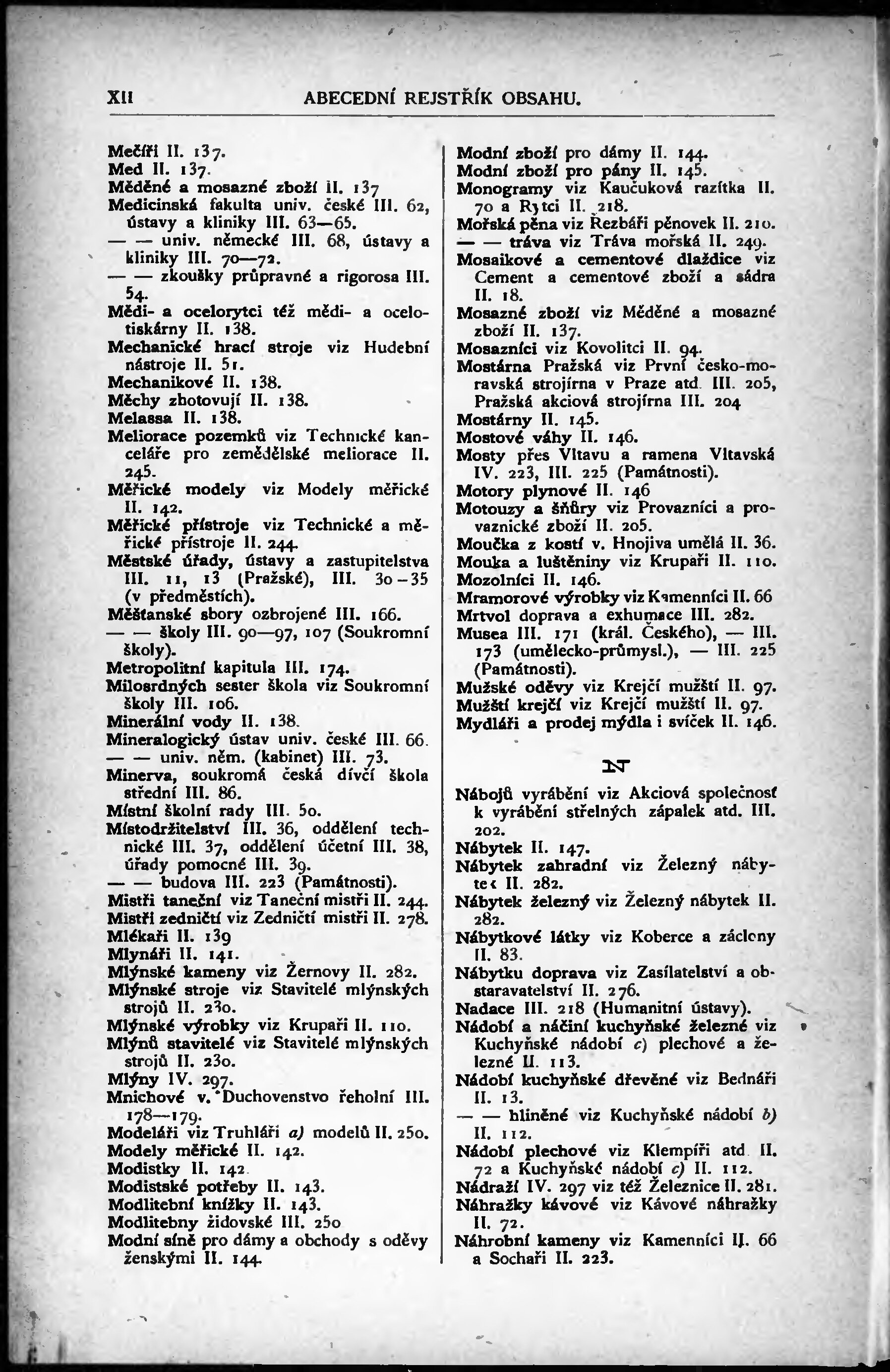 * Číslo stránky: XII Typ stránky: rejstřík