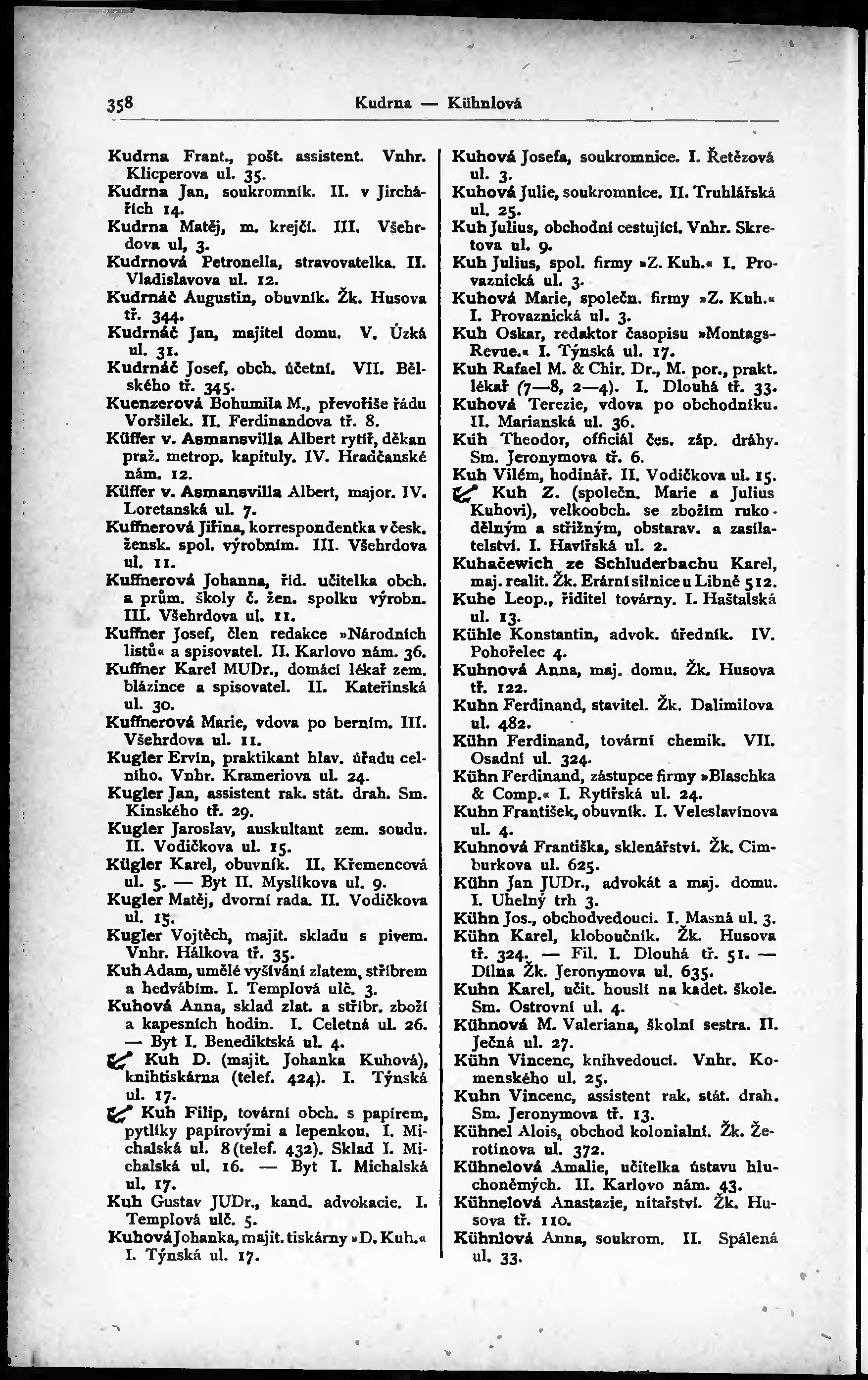 * Volná část monografie: svazek - Adressář královského hlavního města Prahy a sousedních obcí Bubenče, Karlína, Smíchova, Kr. Vinohrad, Vršovic a Žižkova