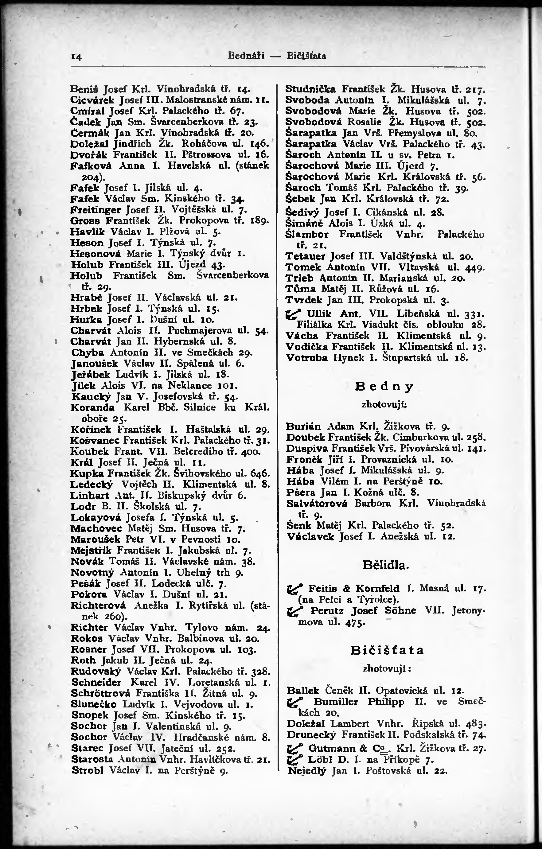 * Volná část monografie: svazek - Adressář královského hlavního města Prahy a sousedních obcí Bubenče, Karlína, Smíchova, Kr. Vinohrad, Vršovic a Žižkova