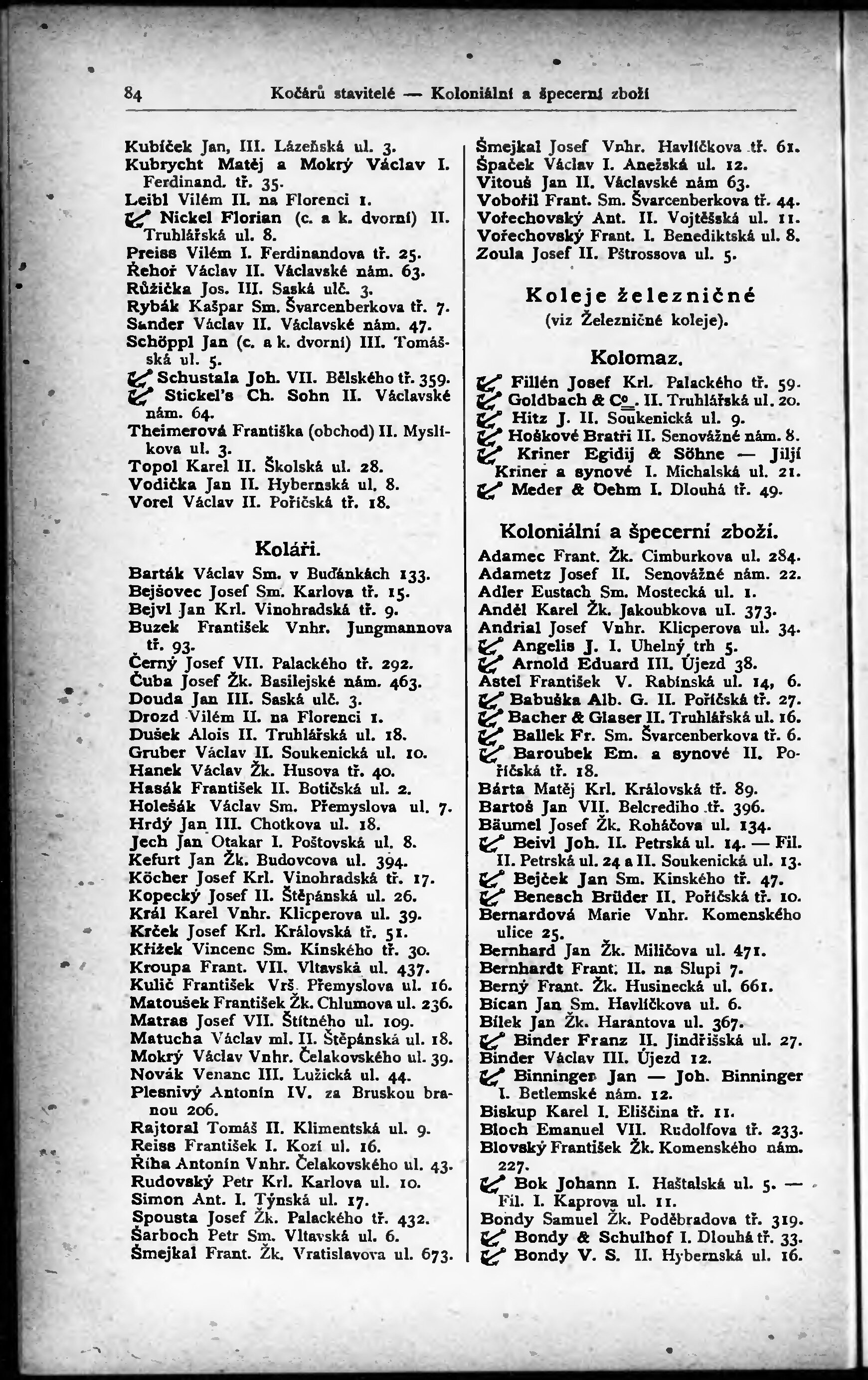 * Volná část monografie: svazek - Adressář královského hlavního města Prahy a sousedních obcí Bubenče, Karlína, Smíchova, Kr. Vinohrad, Vršovic a Žižkova