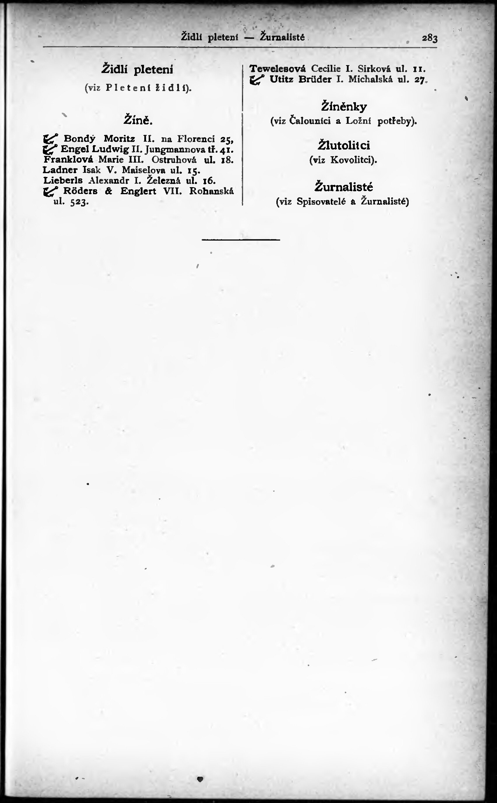 * Volná část monografie: svazek - Adressář královského hlavního města Prahy a sousedních obcí Bubenče, Karlína, Smíchova, Kr. Vinohrad, Vršovic a Žižkova