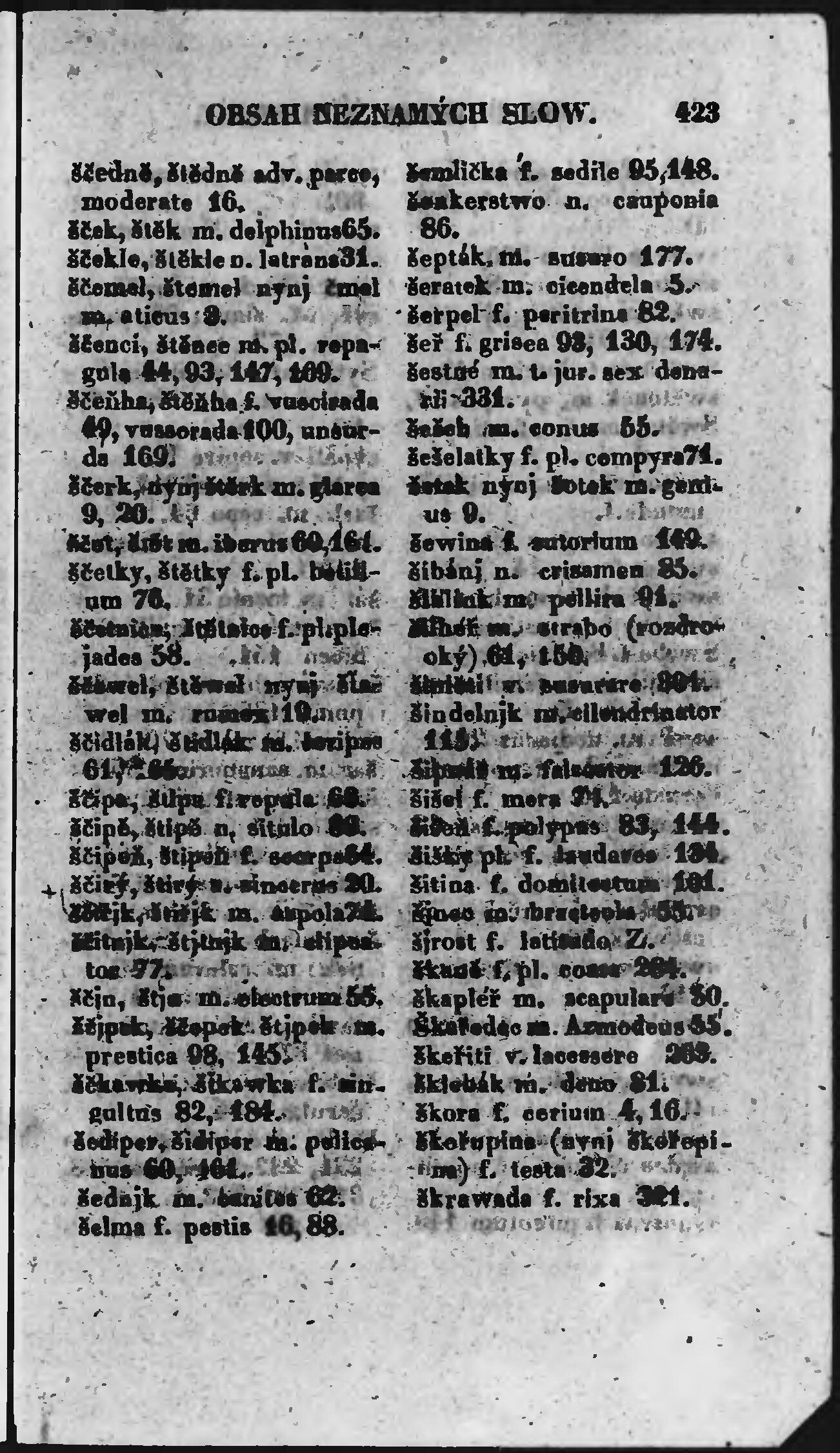 * Číslo stránky: 423 Typ stránky: rejstřík