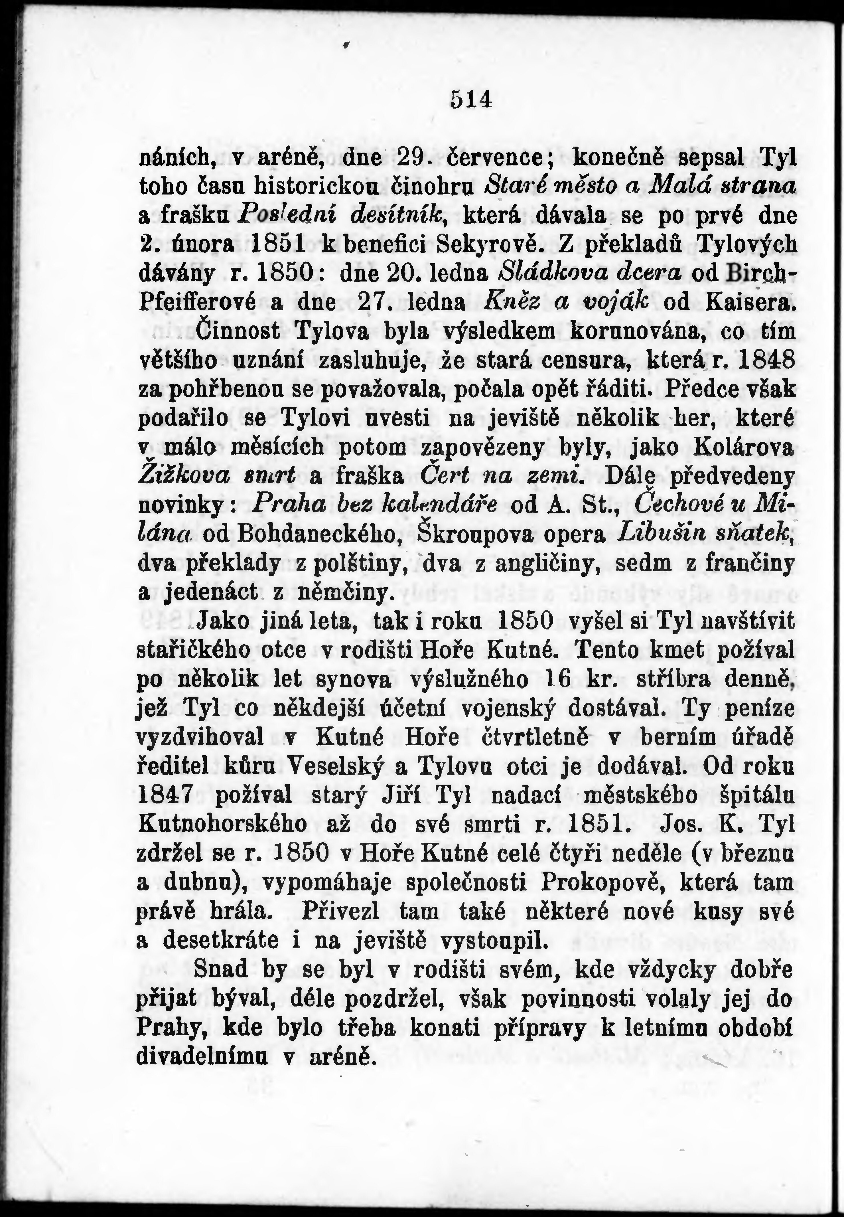 * Volná část monografie: svazek - Josefa Kaj. Tyla Sebrané spisy.