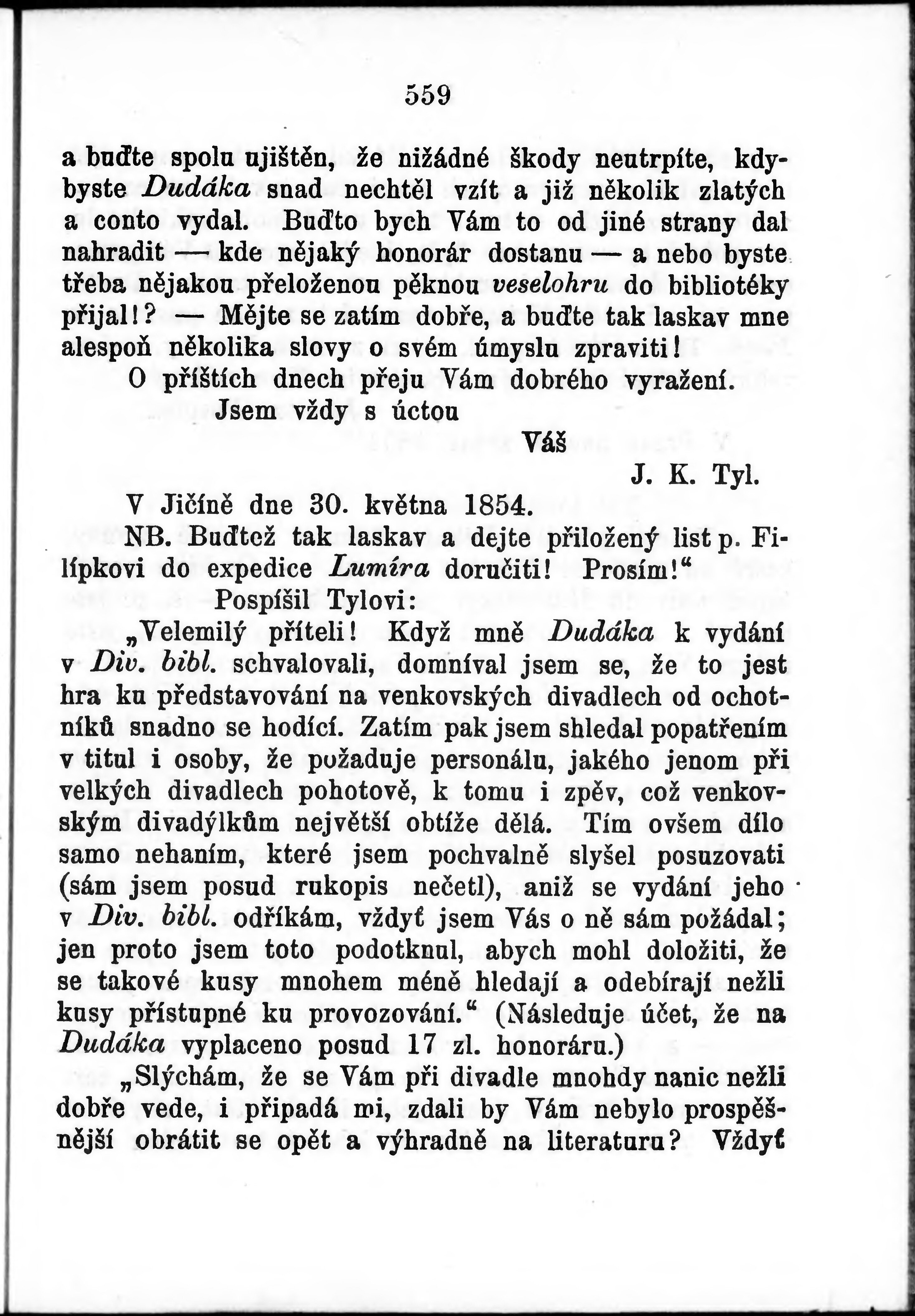 * Volná část monografie: svazek - Josefa Kaj. Tyla Sebrané spisy.