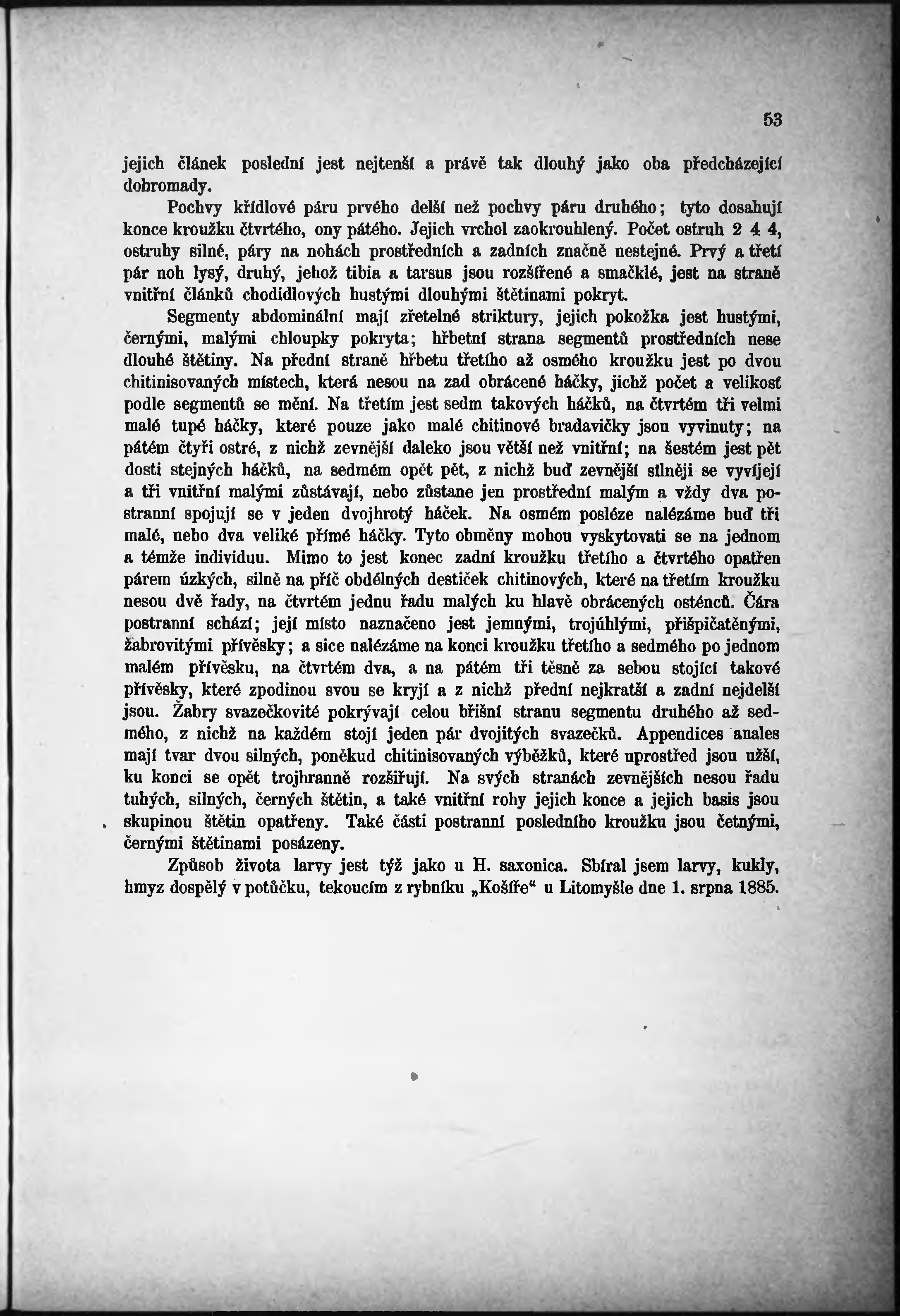 * Hlavní název: Čásť specielní, obsahující podrobný popis proměny 17 druhů českých Trichopter