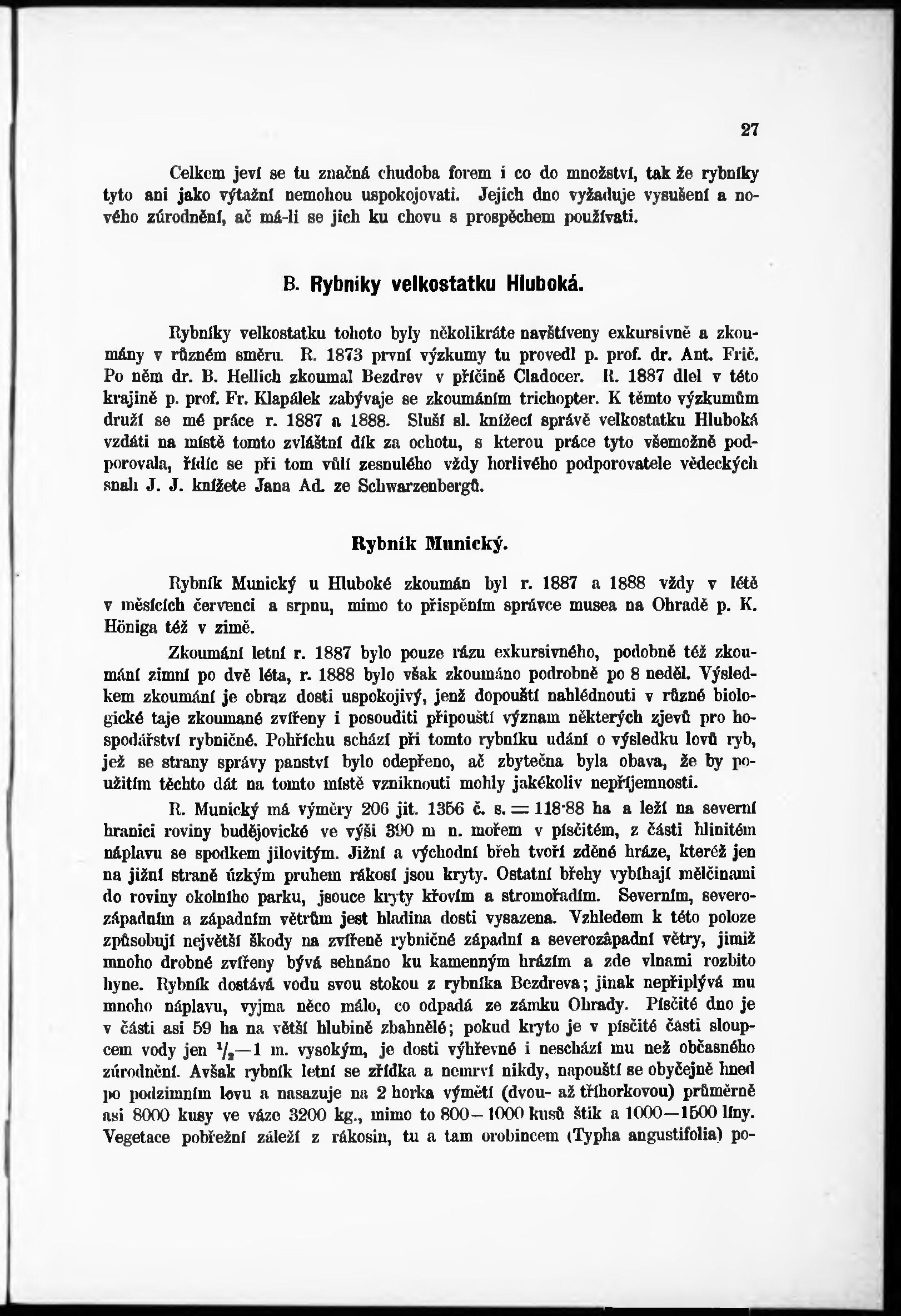 * Volná část monografie: svazek - Výzkumy zvířeny ve vodách českých.