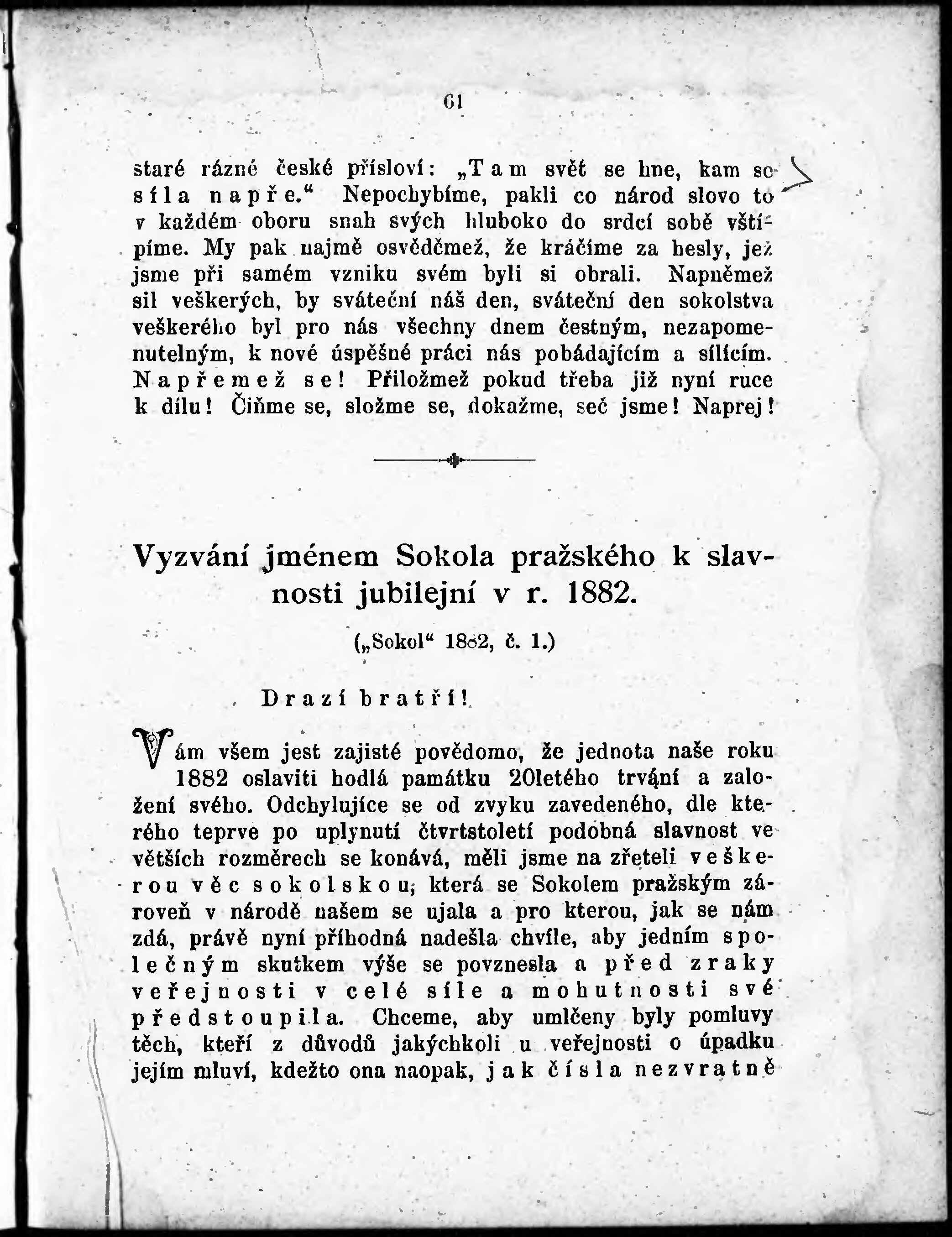 * Hlavní název: Vyzvání jménem Sokola pražského k slavnosti jubilejní v r. 1882