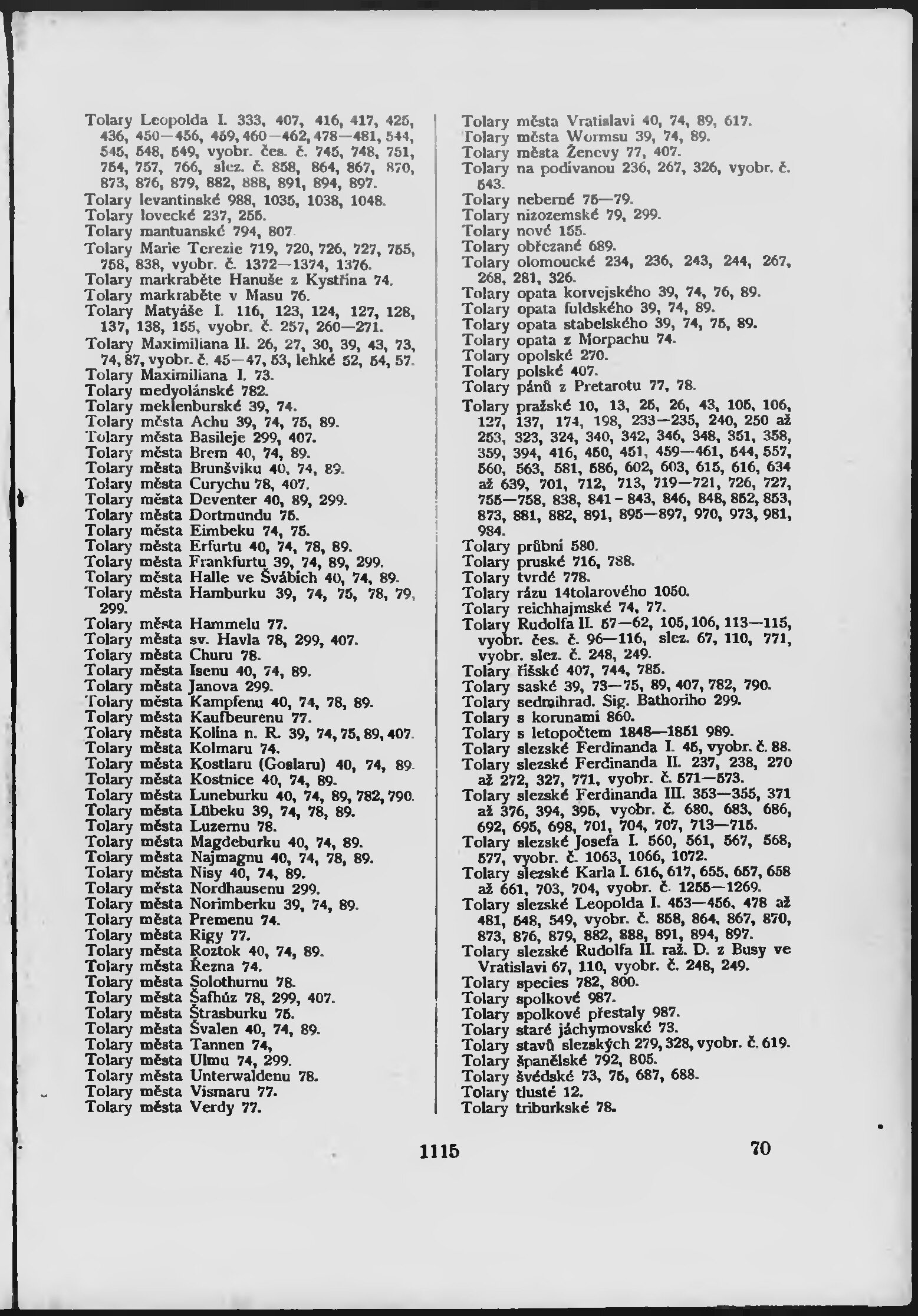 * Číslo stránky: 1115 Typ stránky: rejstřík
