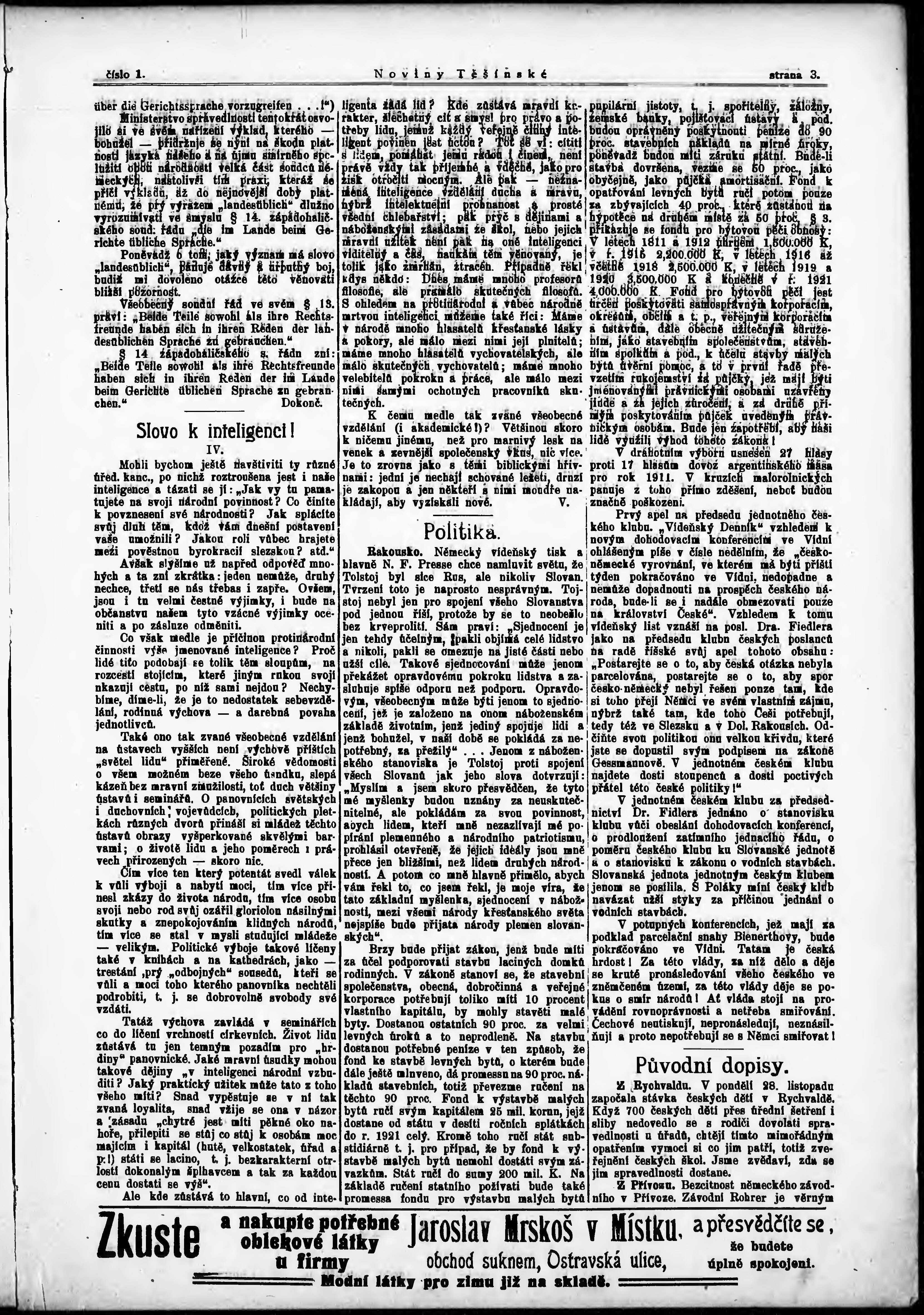 * Datum vydání výtisku: 3.12.1910 Číslo výtisku: 1