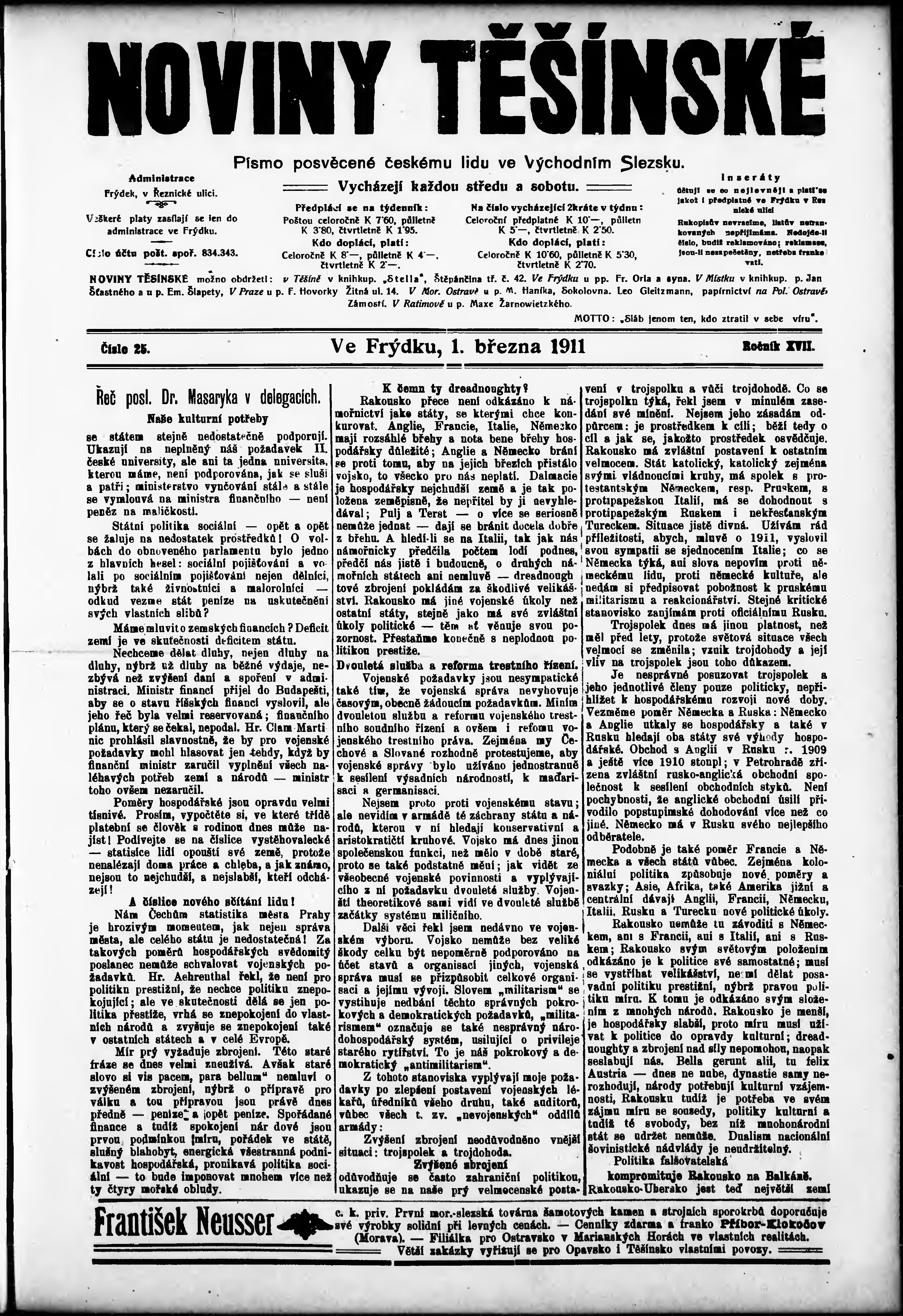 * Datum vydání výtisku: 1.3.1911 Číslo výtisku: 25
