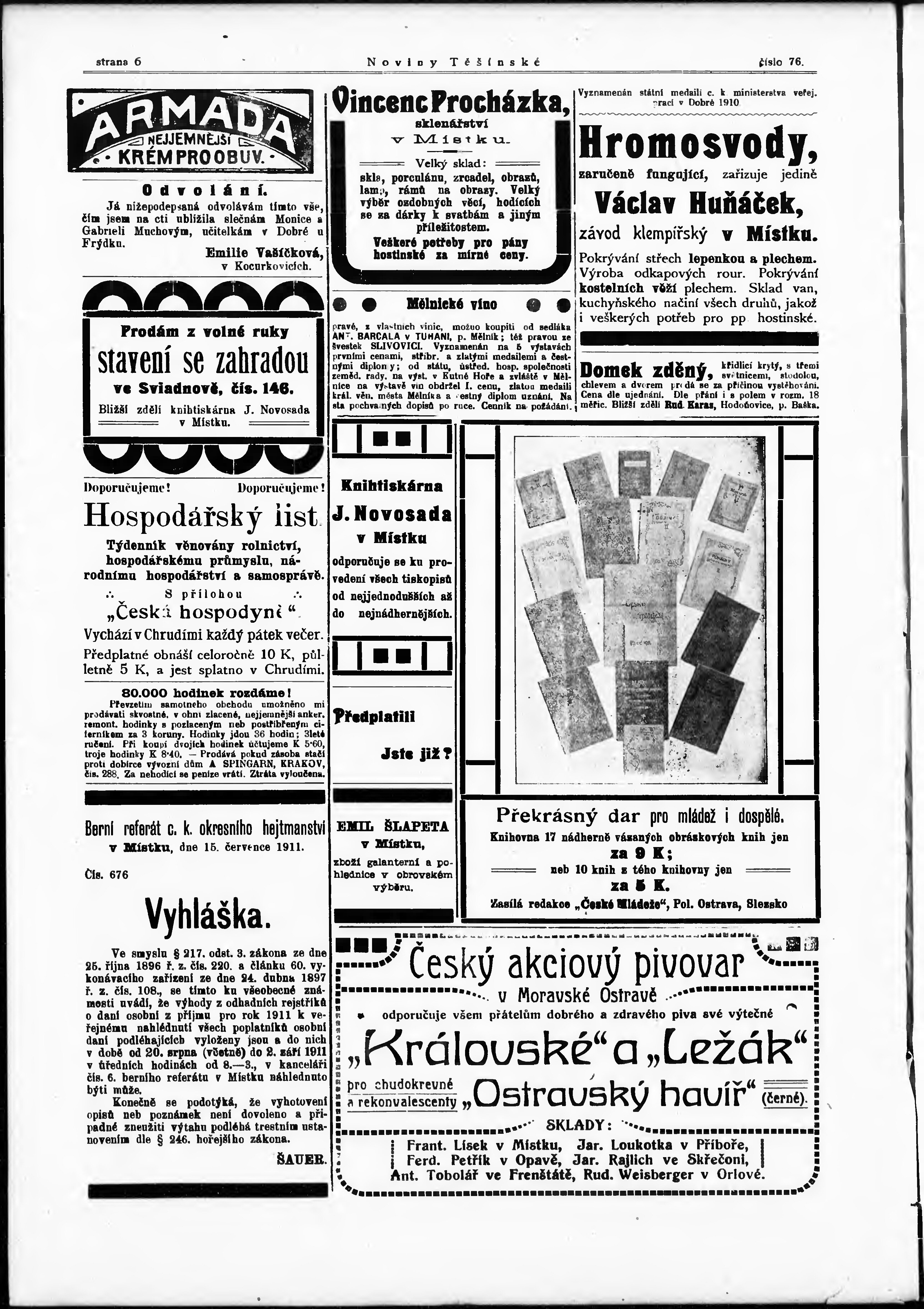 * Datum vydání výtisku: 26.8.1911 Číslo výtisku: 76