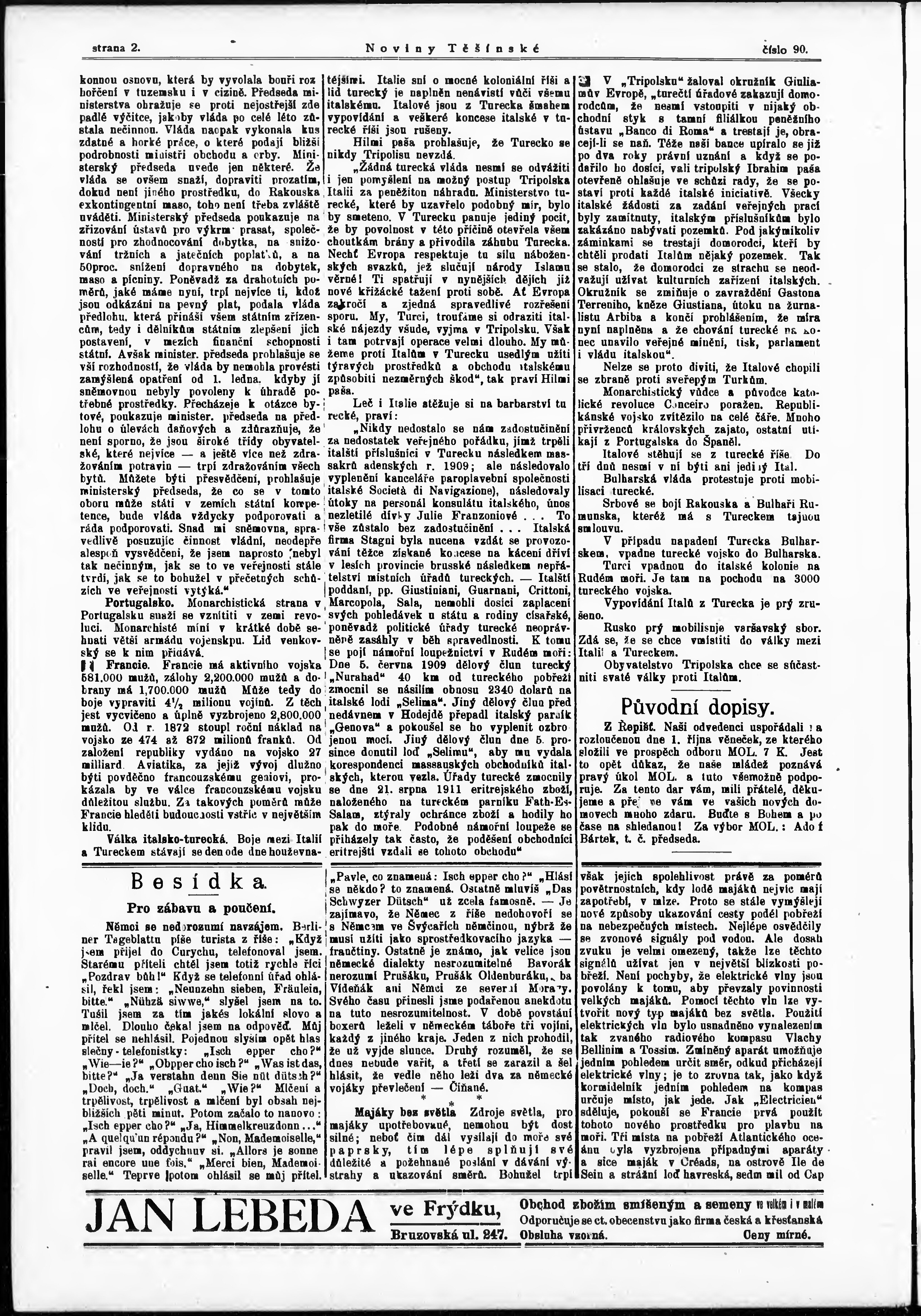 * Datum vydání výtisku: 14.10.1911 Číslo výtisku: 90