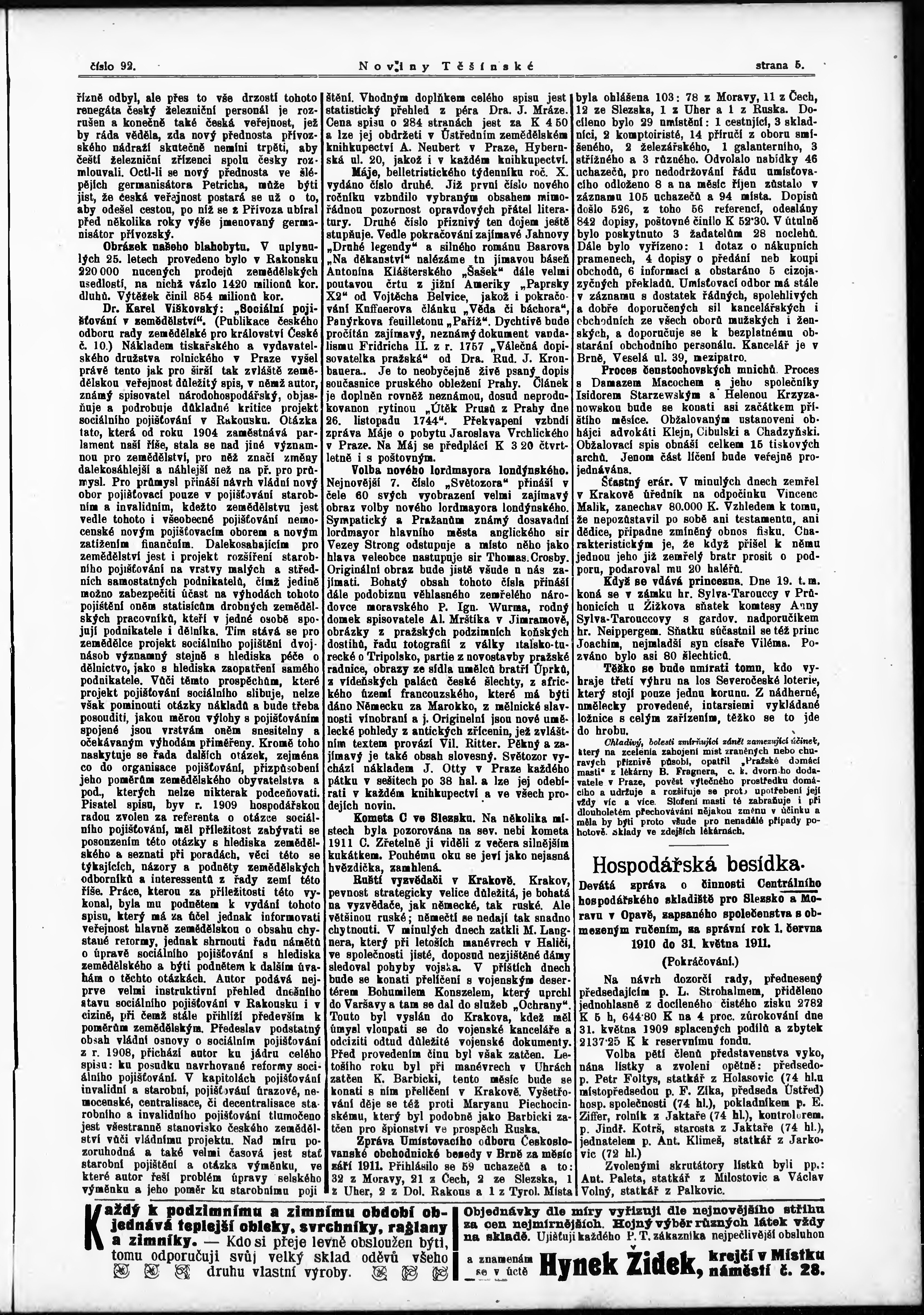 * Datum vydání výtisku: 21.10.1911 Číslo výtisku: 92