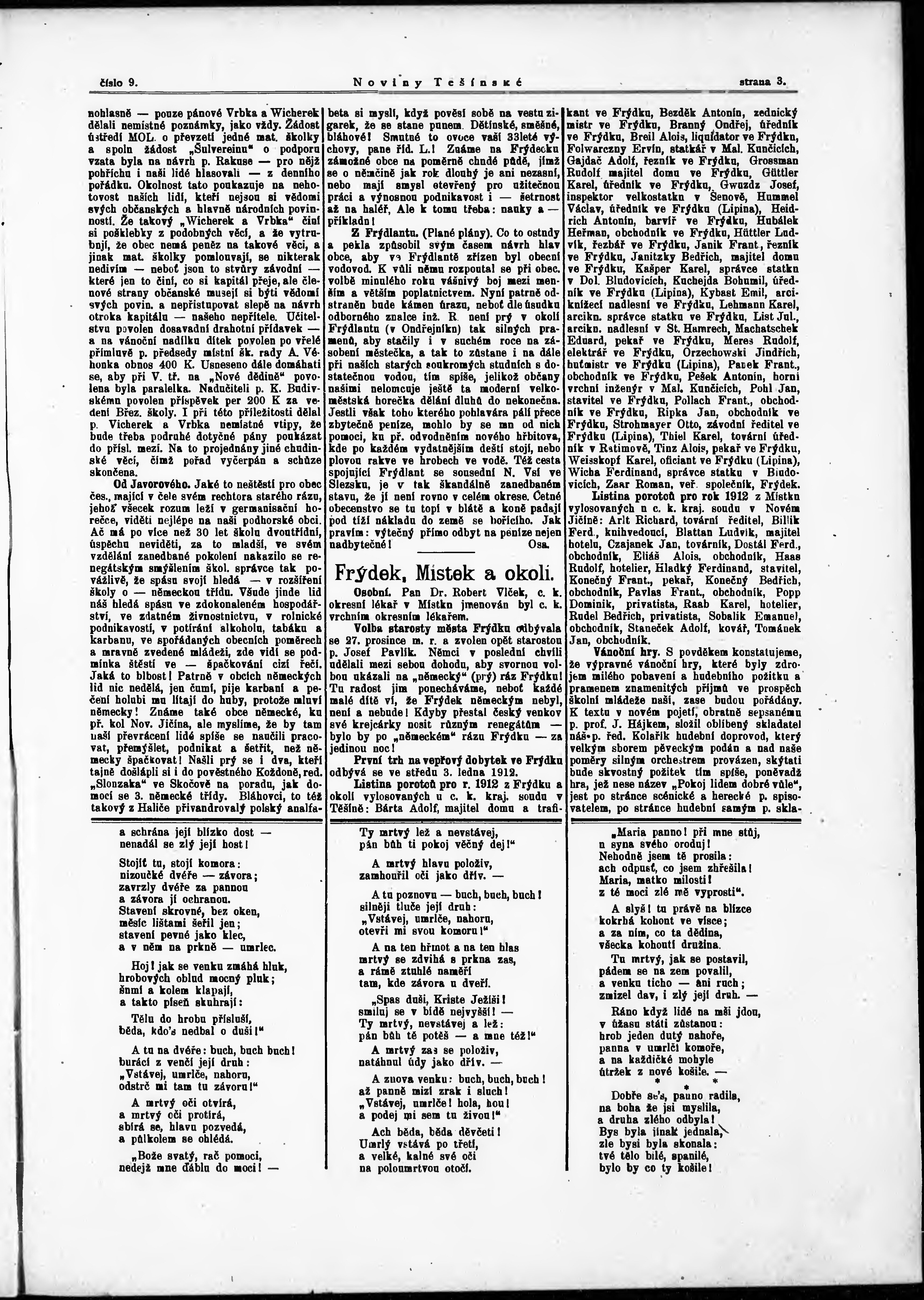 * Datum vydání výtisku: 3.1.1912 Číslo výtisku: 9