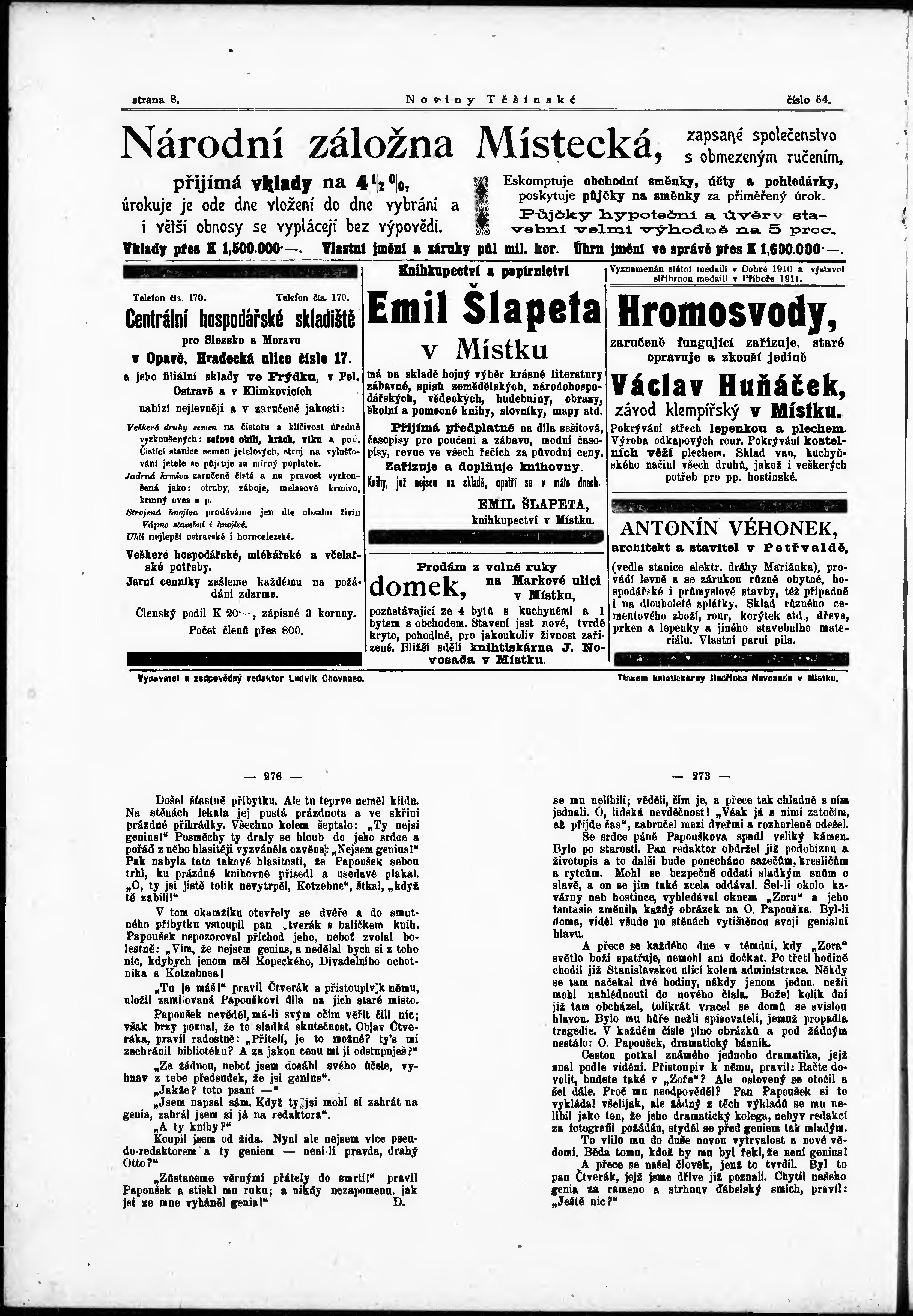 * Datum vydání výtisku: 8.6.1912 Číslo výtisku: 54