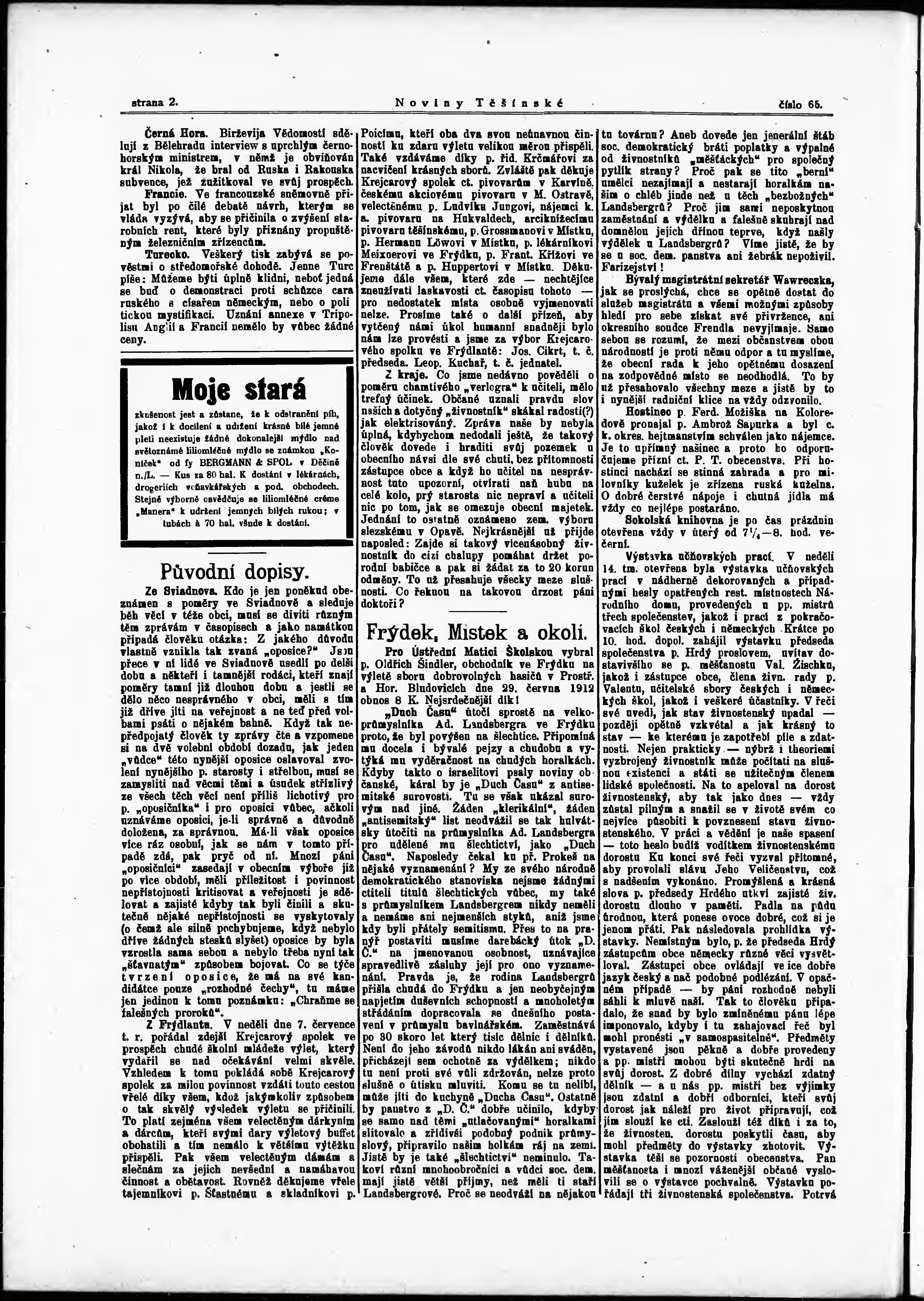 * Datum vydání výtisku: 17.7.1912 Číslo výtisku: 65