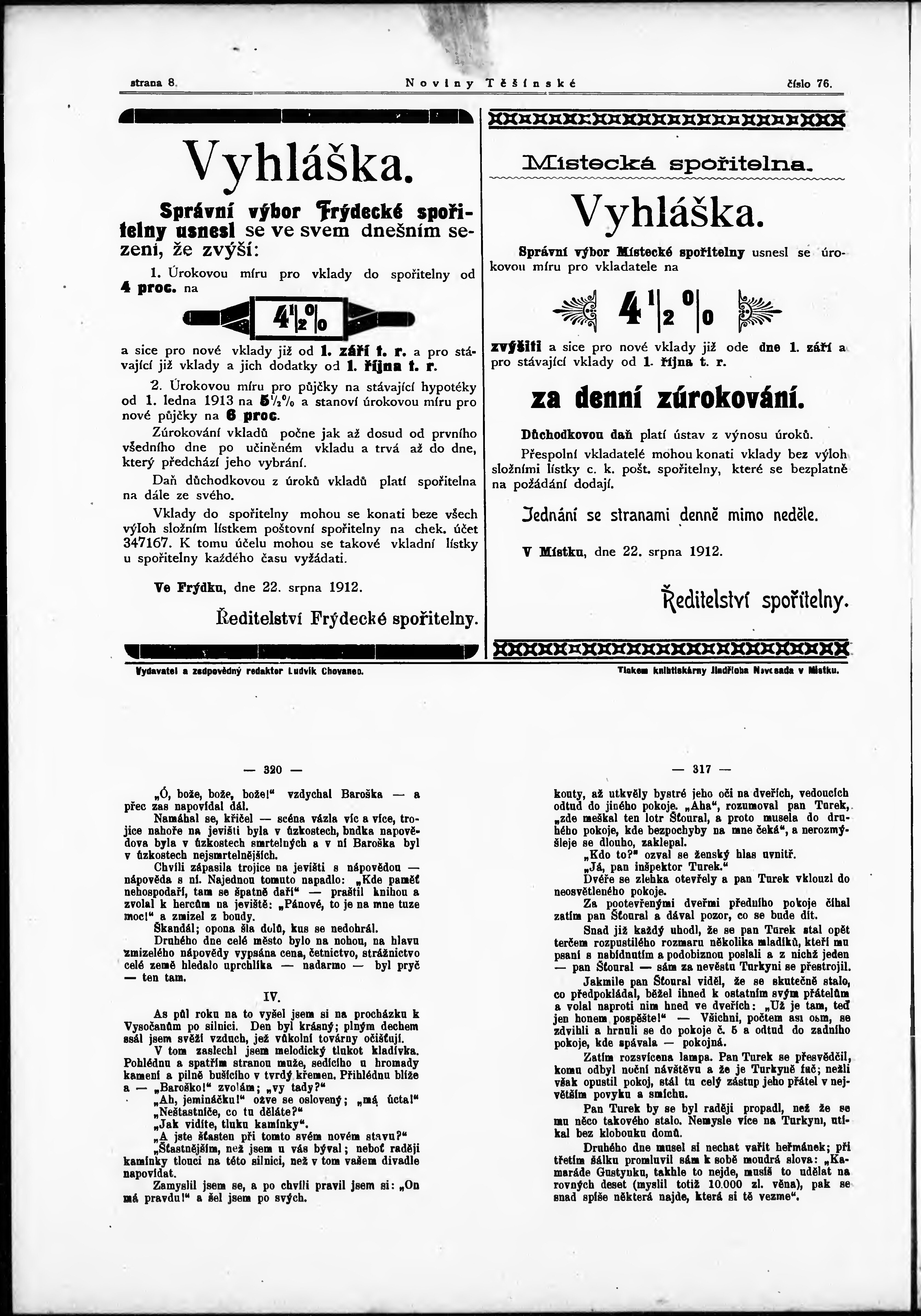 * Datum vydání výtisku: 24.8.1912 Číslo výtisku: 76