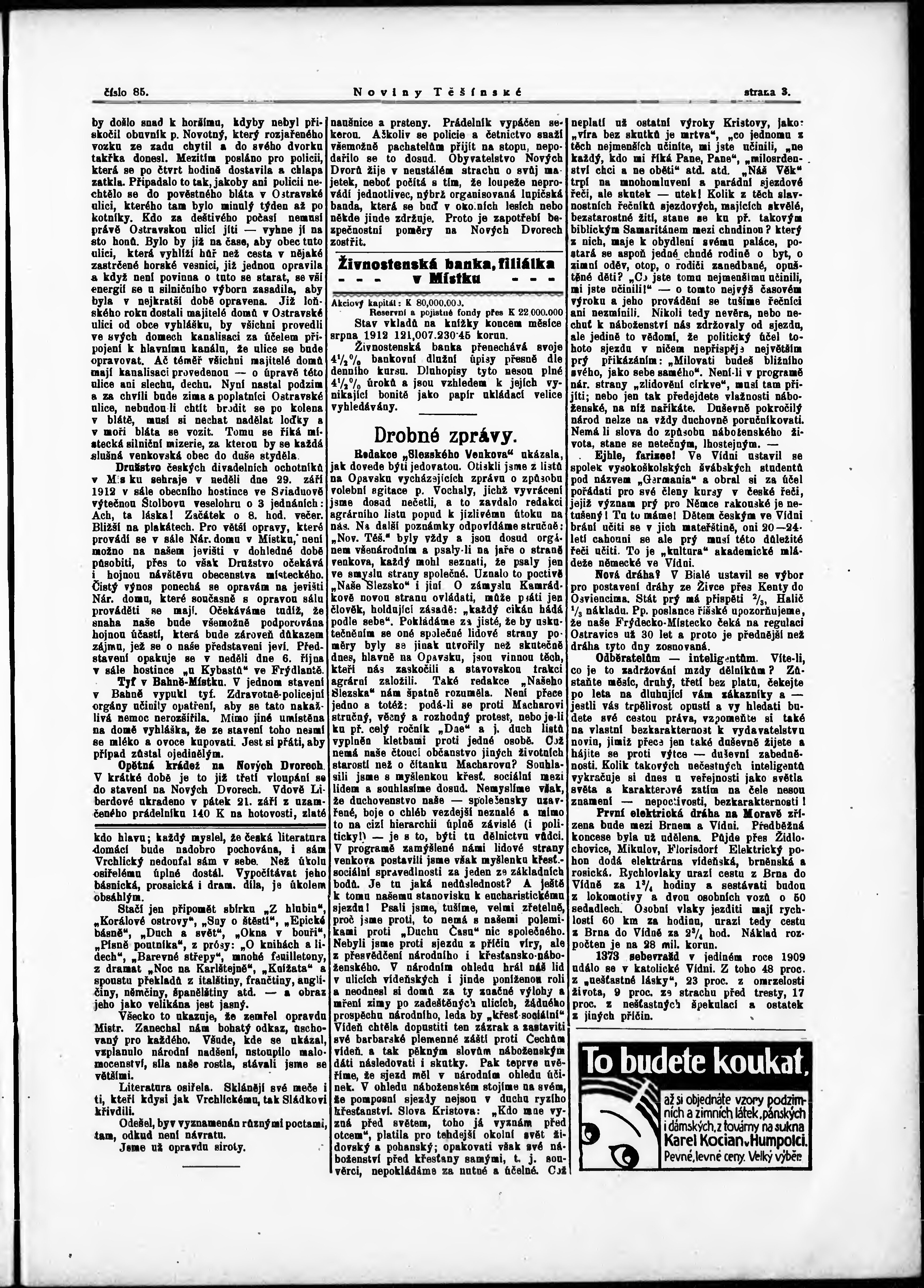 * Datum vydání výtisku: 25.9.1912 Číslo výtisku: 85