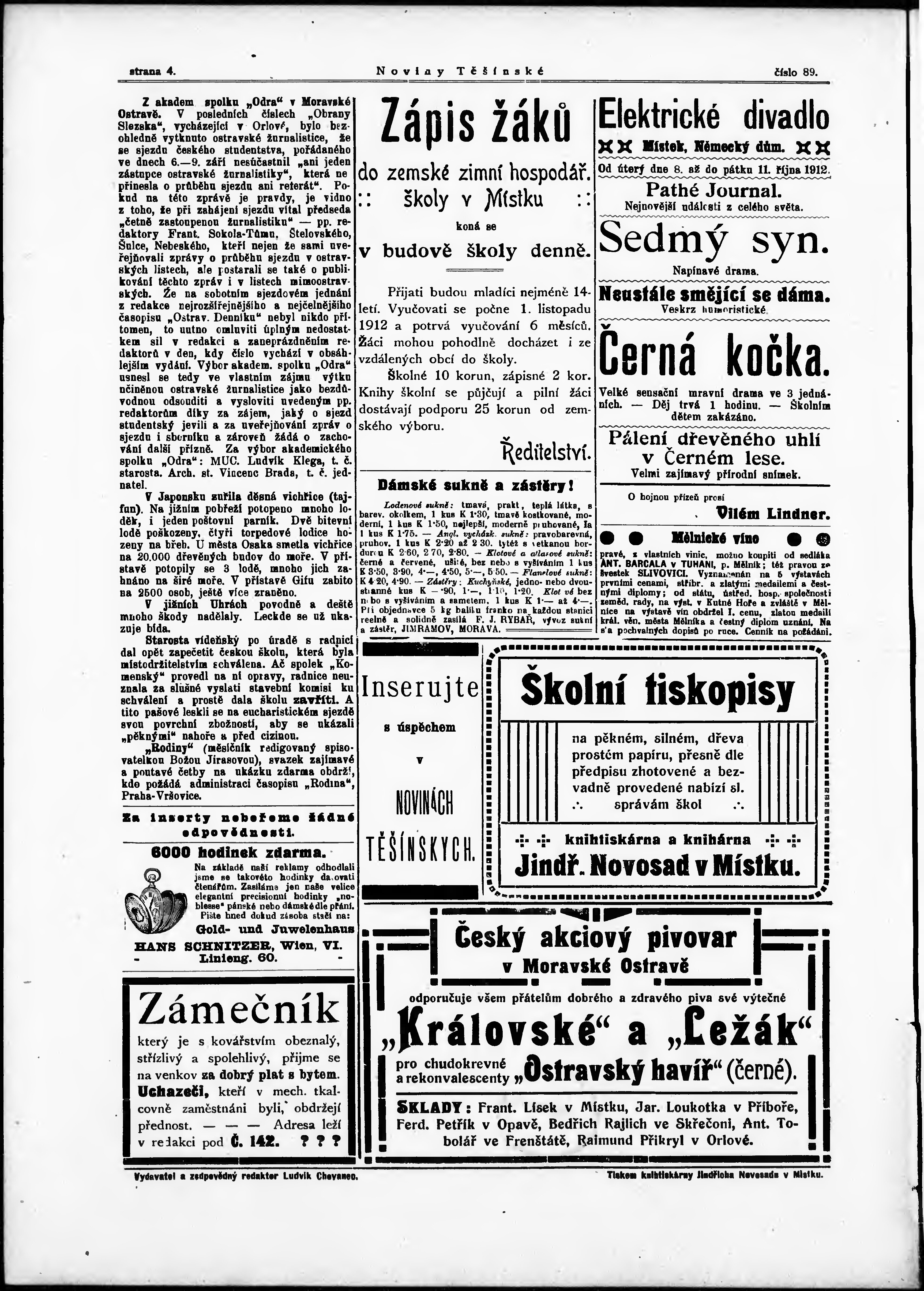 * Datum vydání výtisku: 9.10.1912 Číslo výtisku: 89