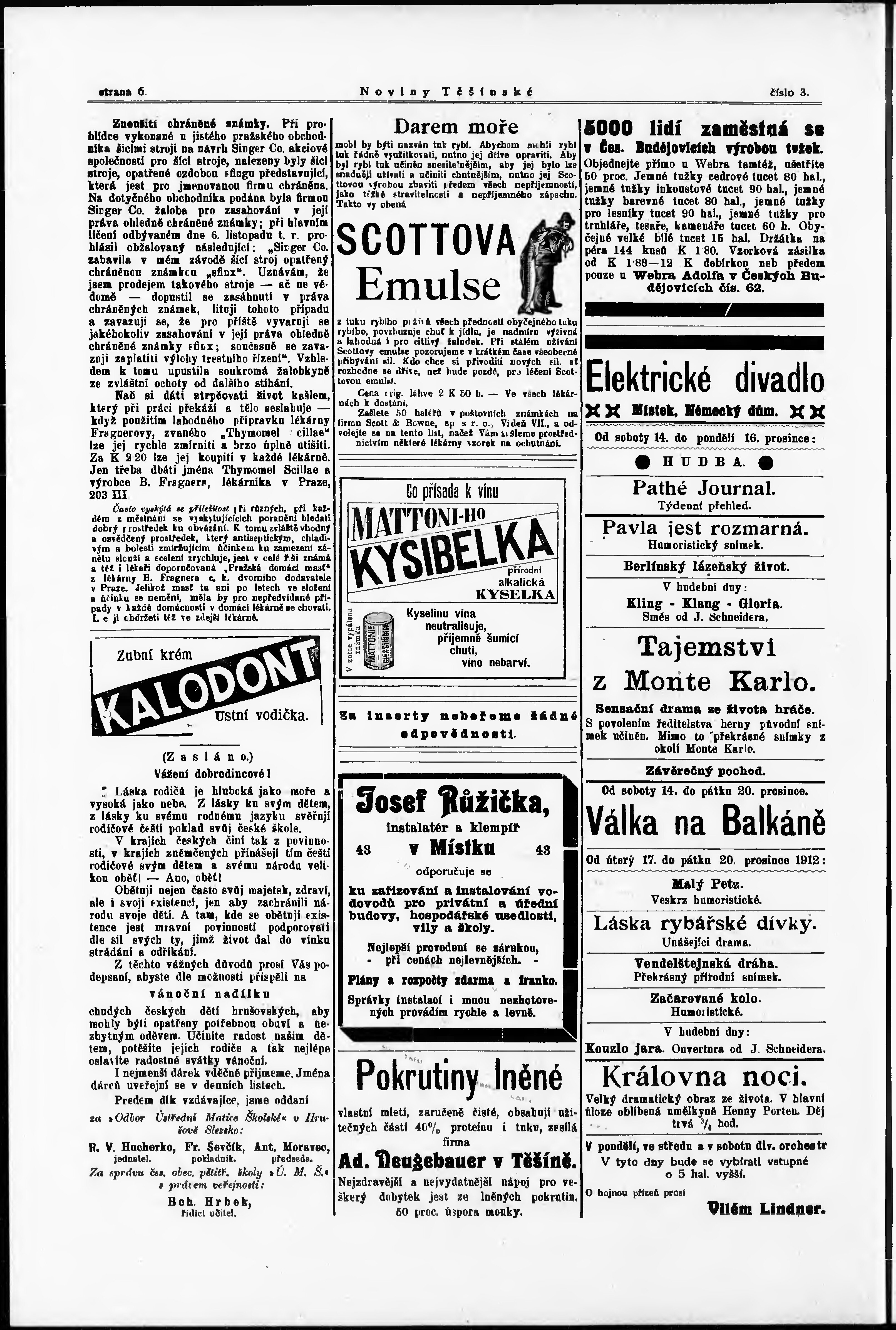 * Datum vydání výtisku: 14.12.1912 Číslo výtisku: 3