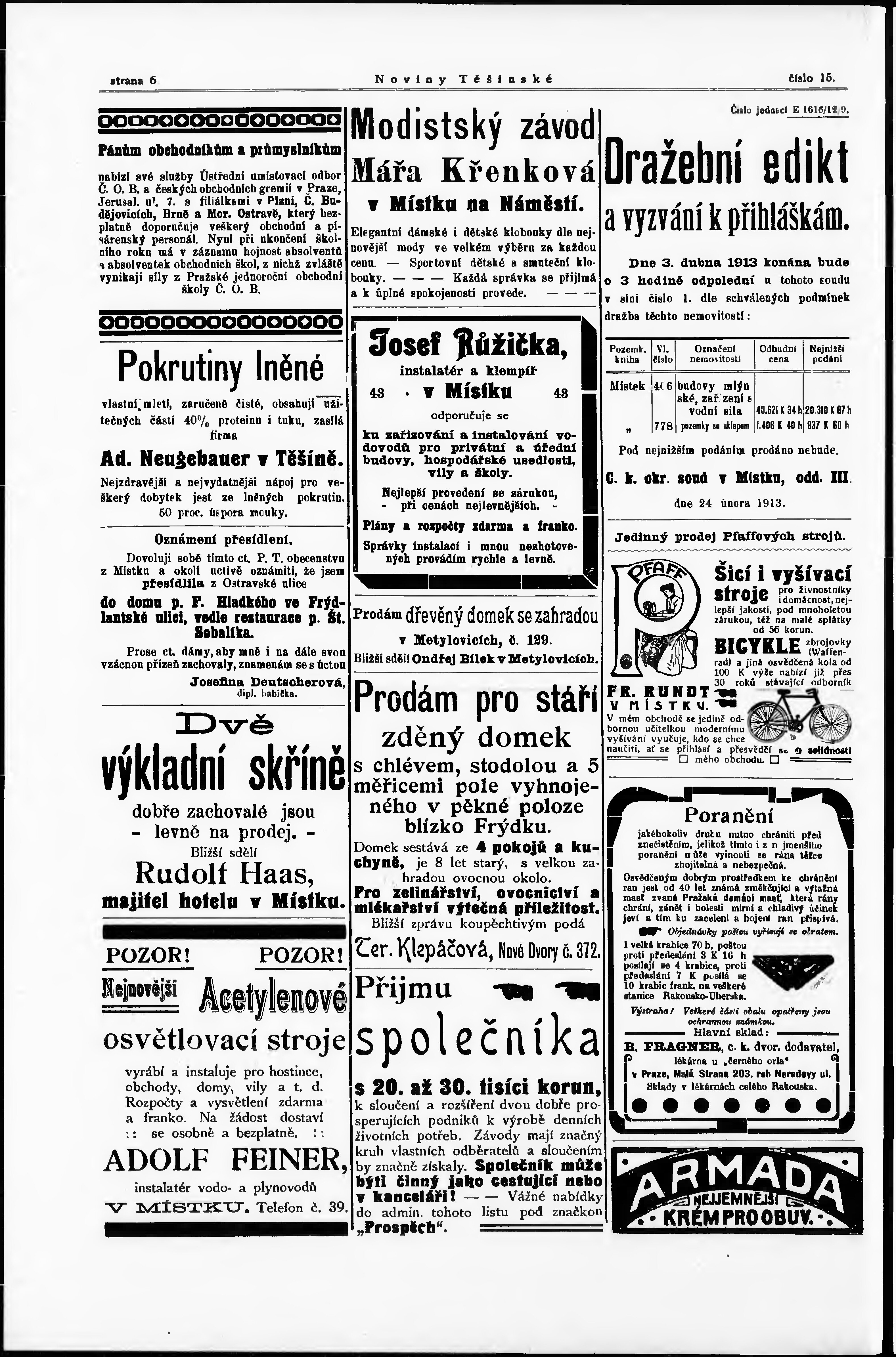 * Datum vydání výtisku: 8.3.1913 Číslo výtisku: 15