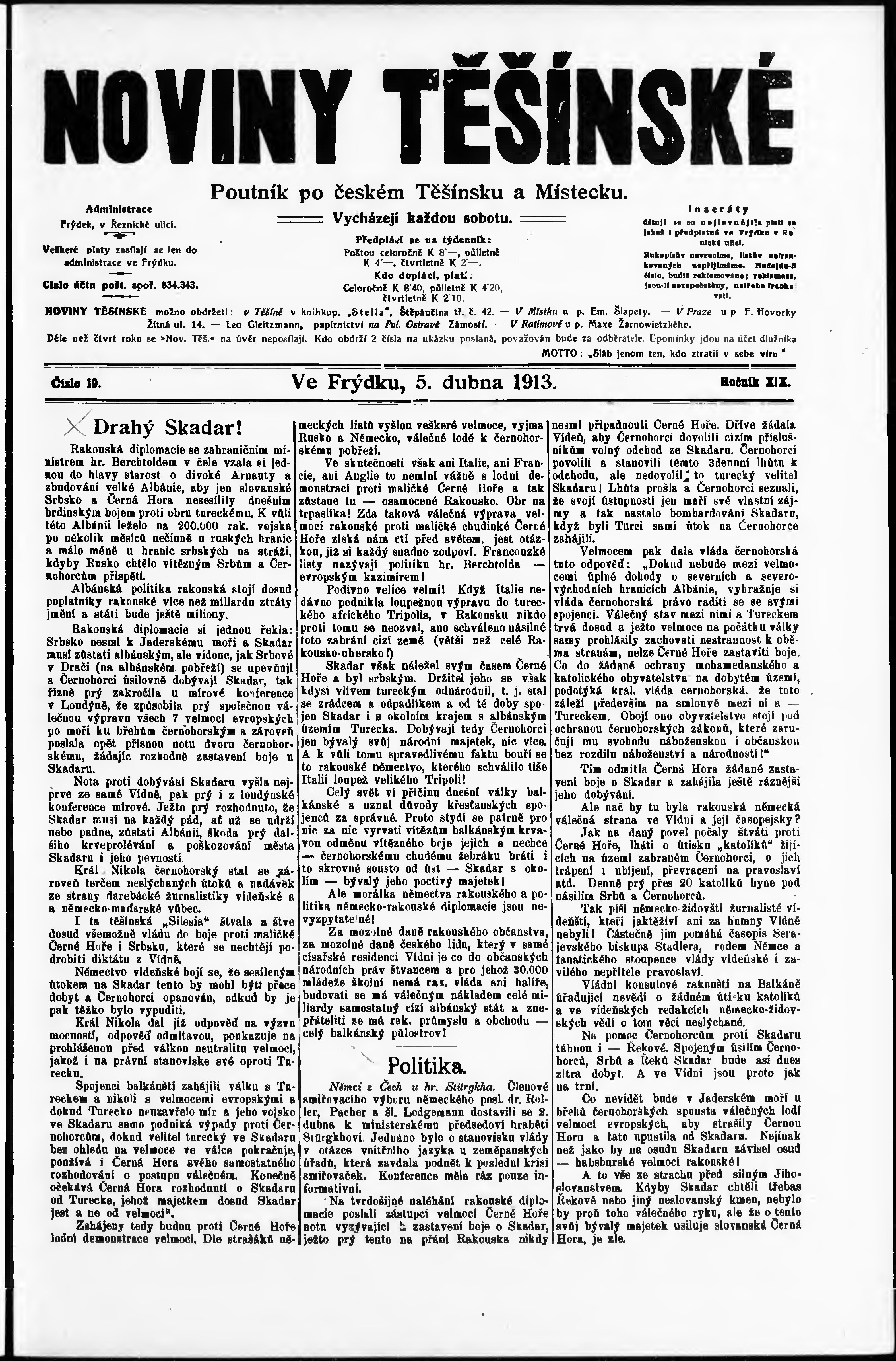 * Datum vydání výtisku: 5.4.1913 Číslo výtisku: 19