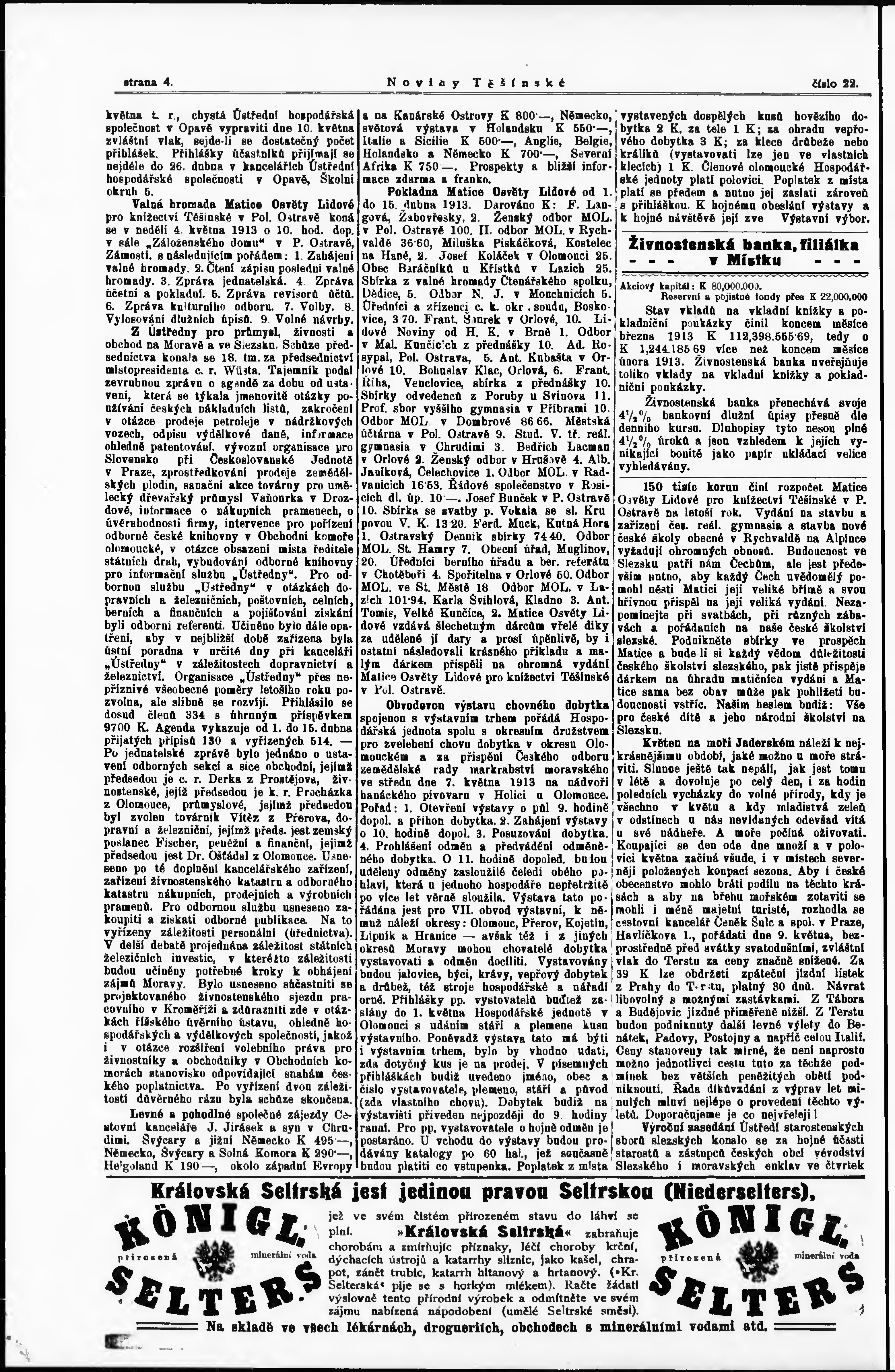 * Datum vydání výtisku: 26.4.1913 Číslo výtisku: 22