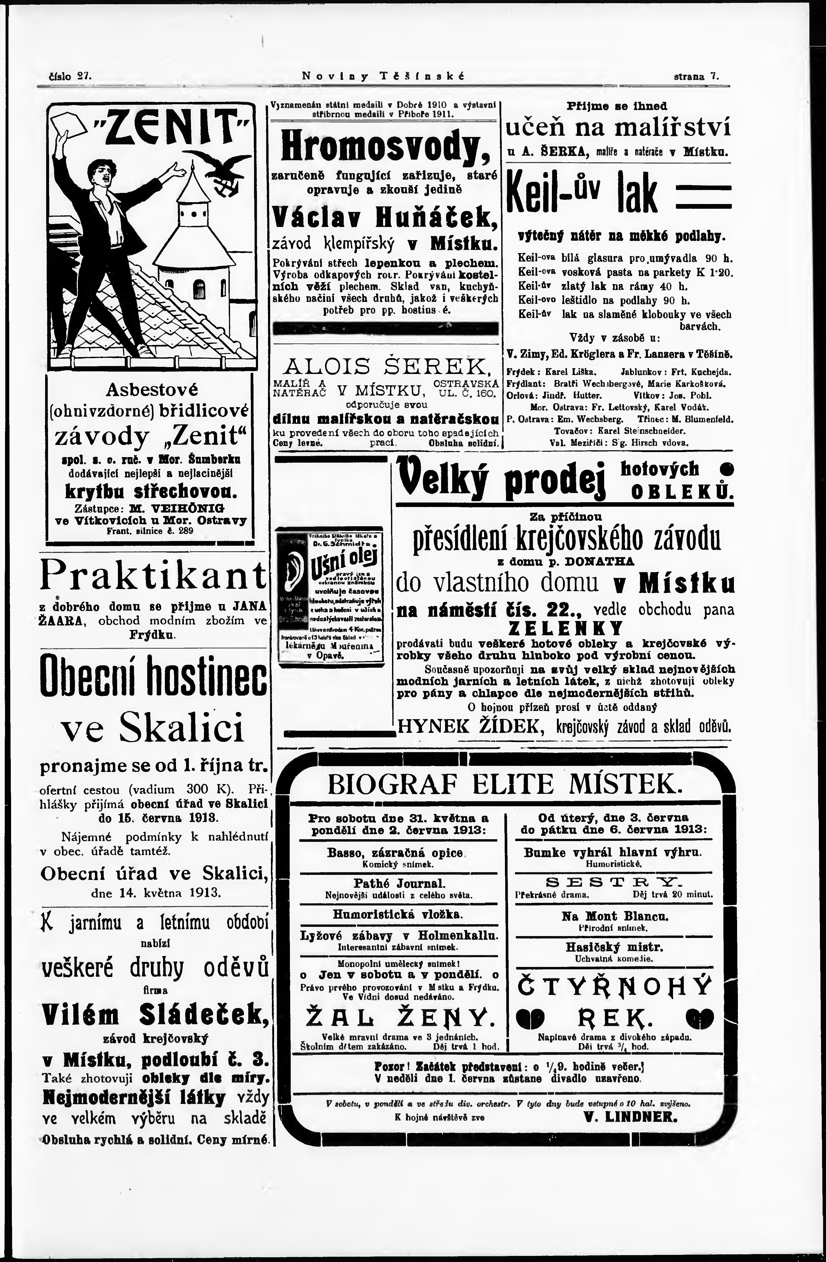 * Datum vydání výtisku: 31.5.1913 Číslo výtisku: 27