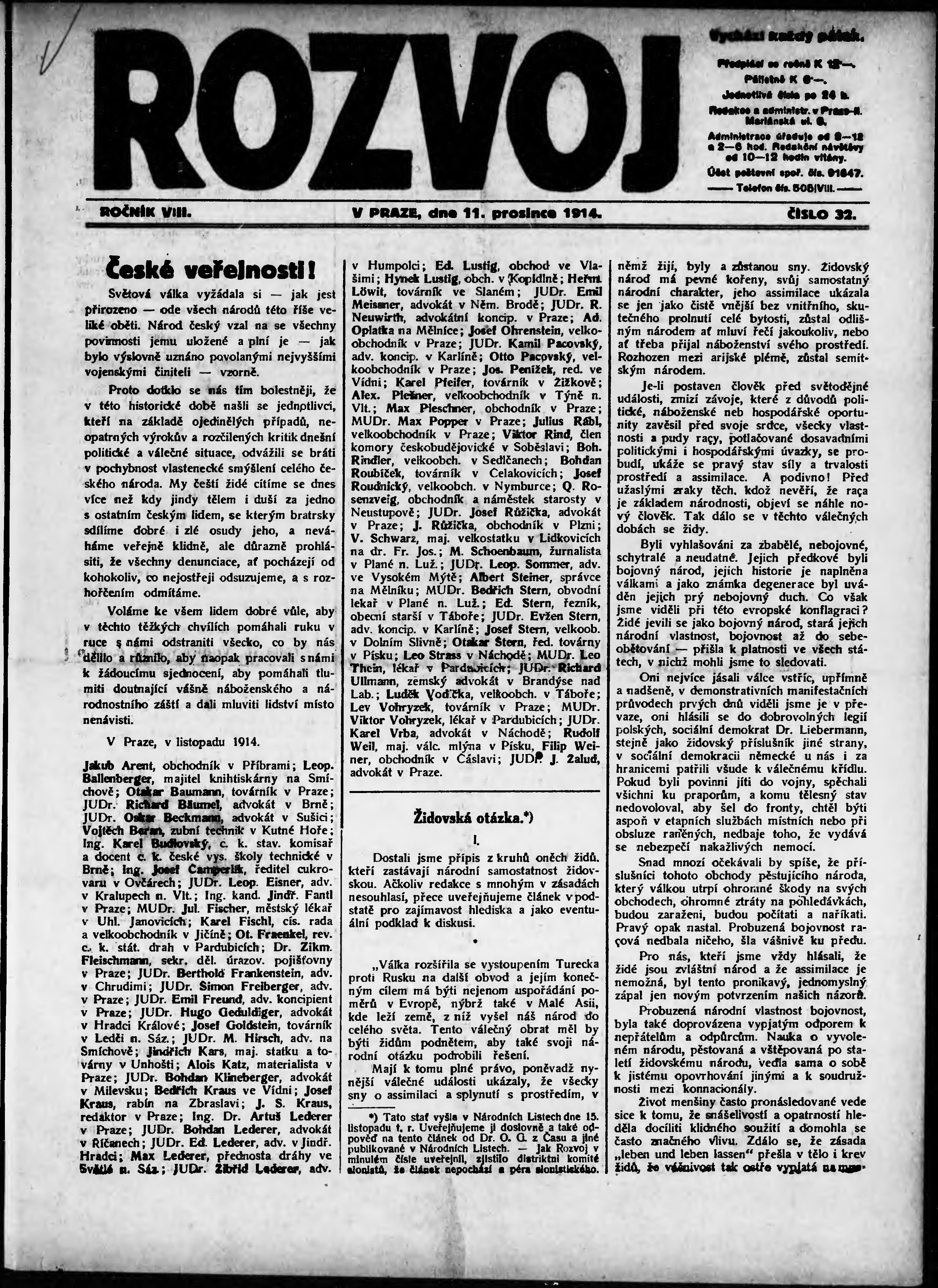 * Datum vydání výtisku: 11.12.1914 Číslo výtisku: 32