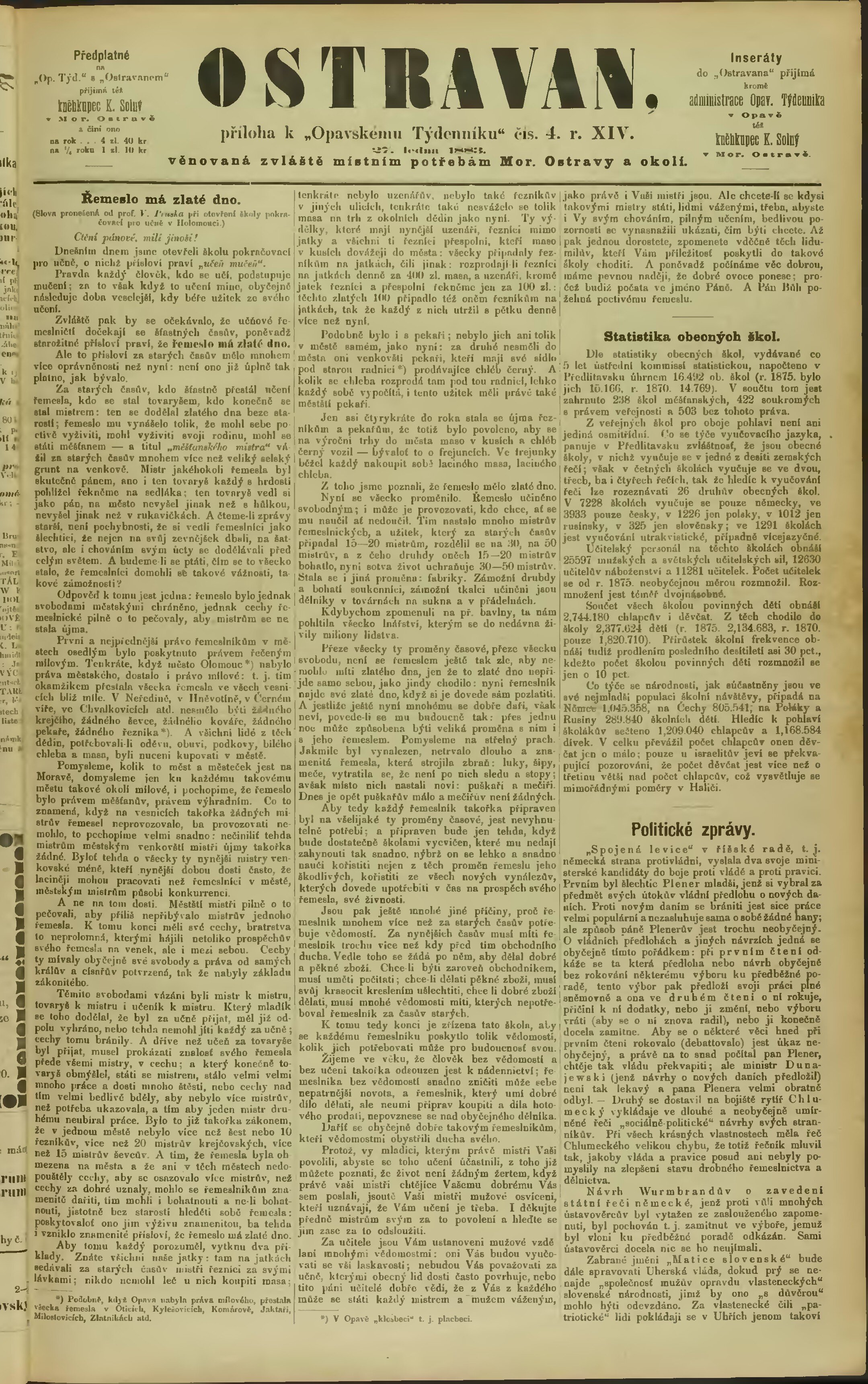 * Datum vydání výtisku: 27.1.1883 Číslo výtisku: 4 Typ výtisku: příloha