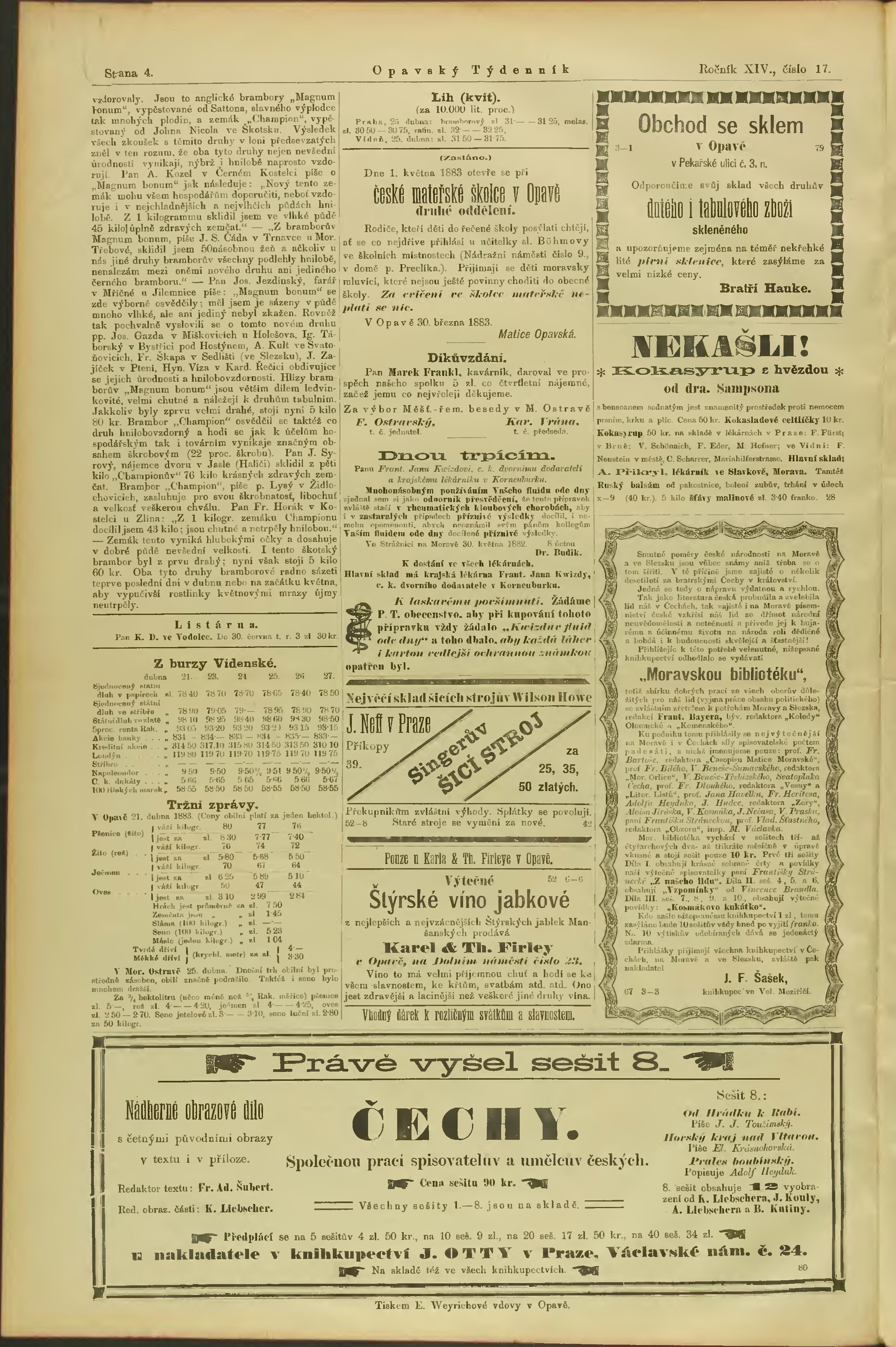 * Datum vydání výtisku: 28.4.1883 Číslo výtisku: 17