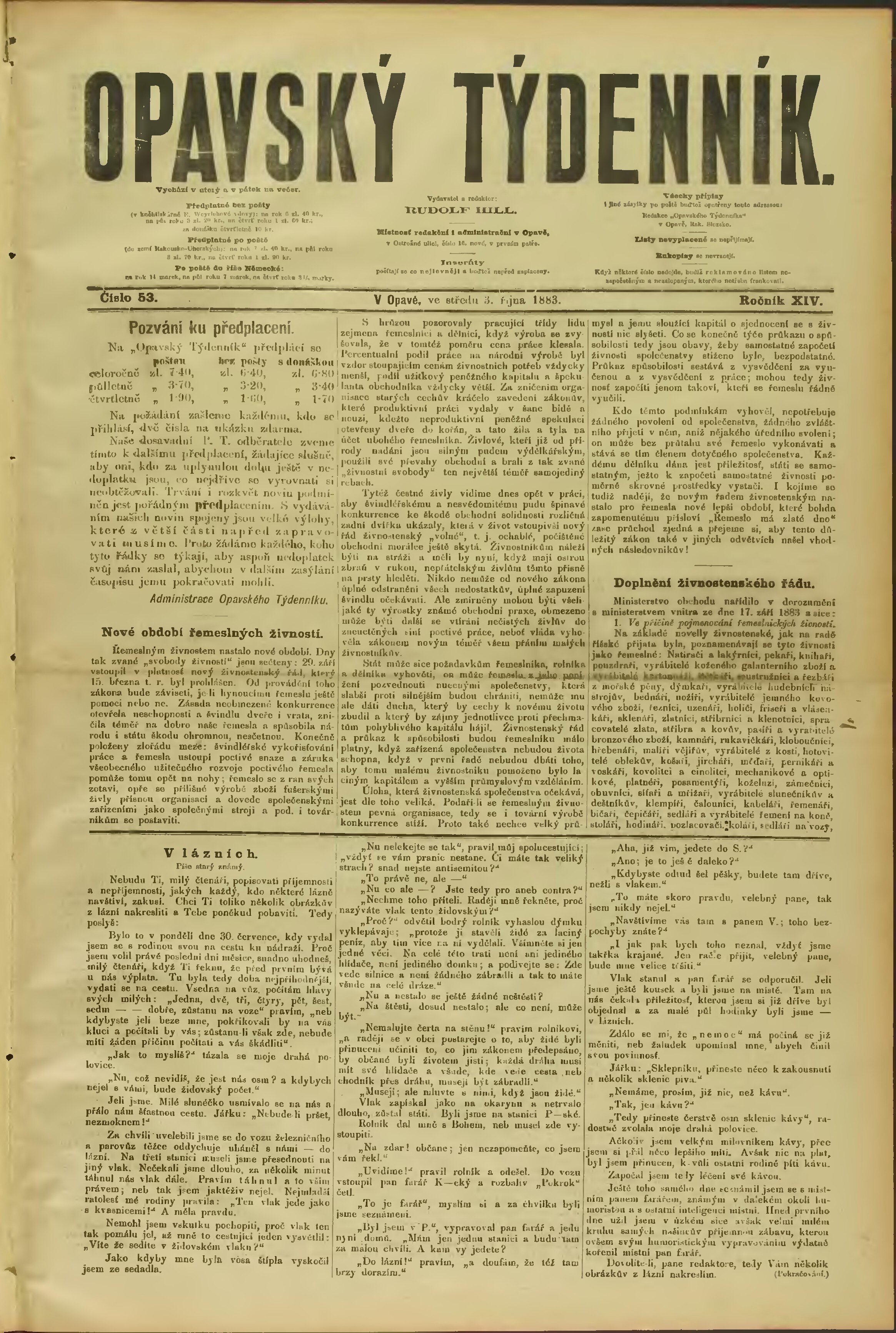 * Datum vydání výtisku: 3.10.1883 Číslo výtisku: 53