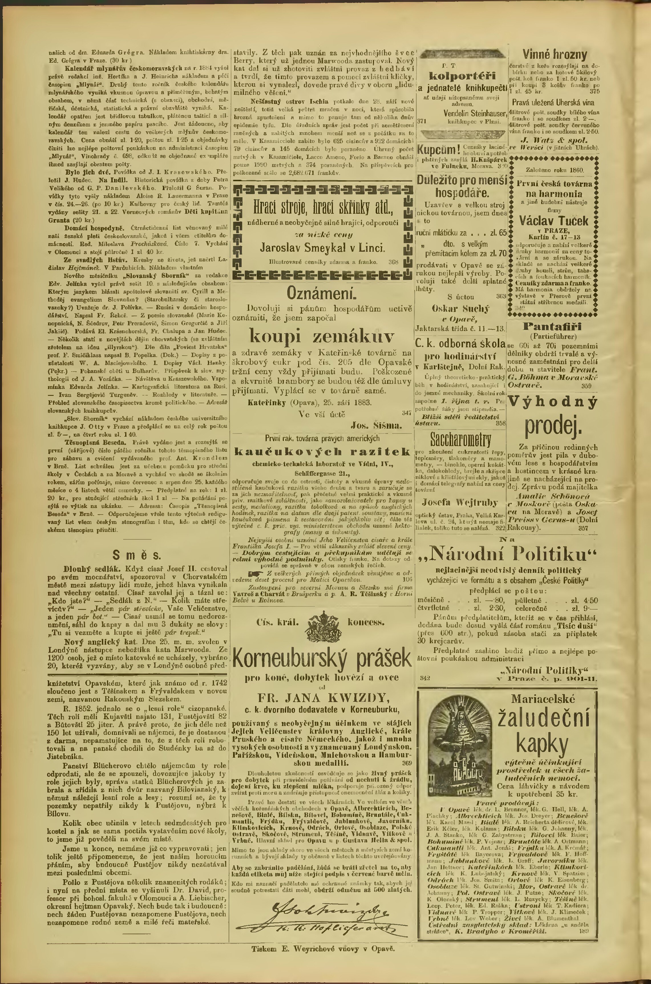 * Datum vydání výtisku: 6.10.1883 Číslo výtisku: 54 Typ výtisku: příloha