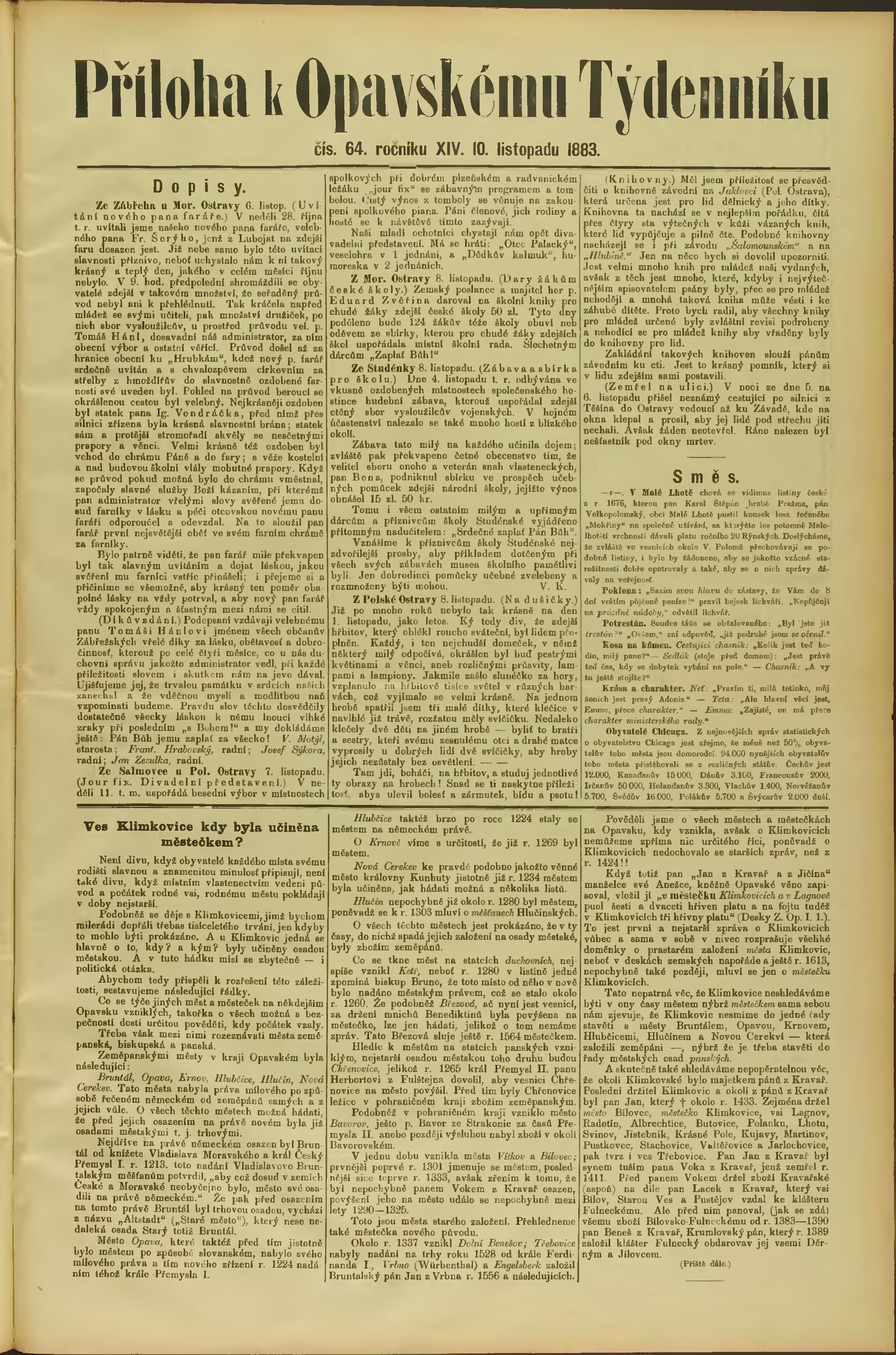 * Datum vydání výtisku: 10.11.1883 Číslo výtisku: 64 Typ výtisku: příloha