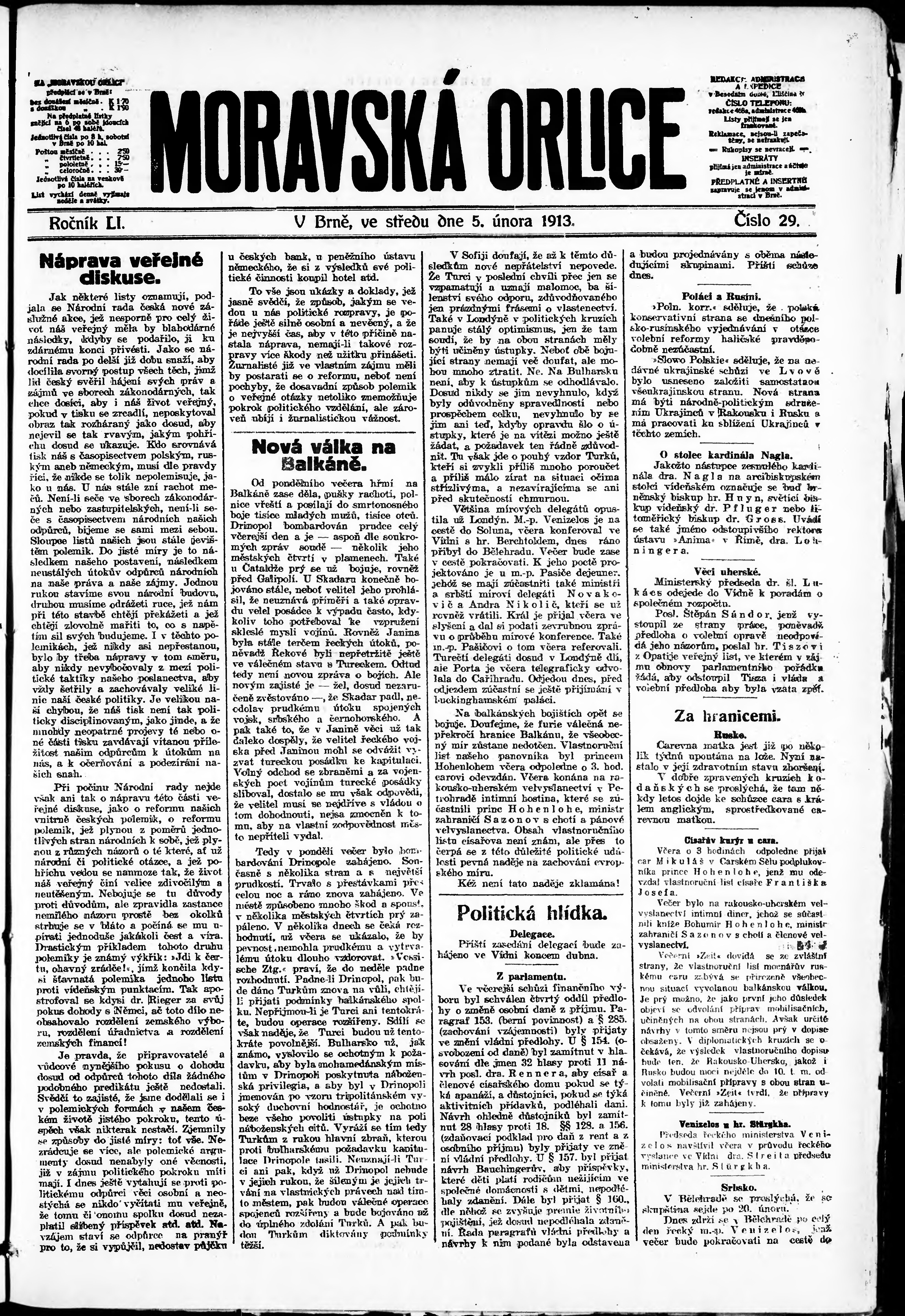 * Datum vydání výtisku: 5.2.1913 Číslo výtisku: 29