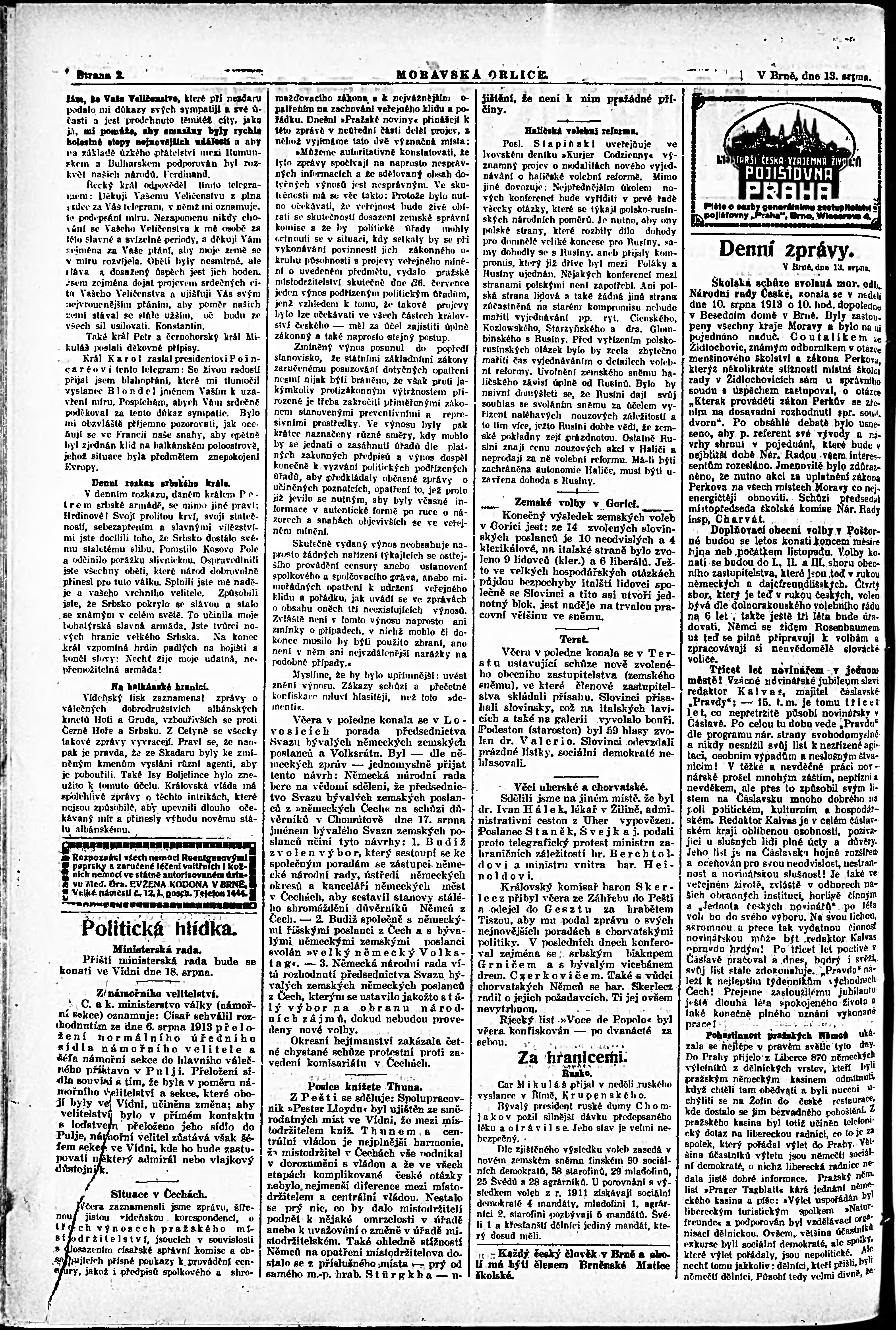 * Datum vydání výtisku: 13.8.1913 Číslo výtisku: 185