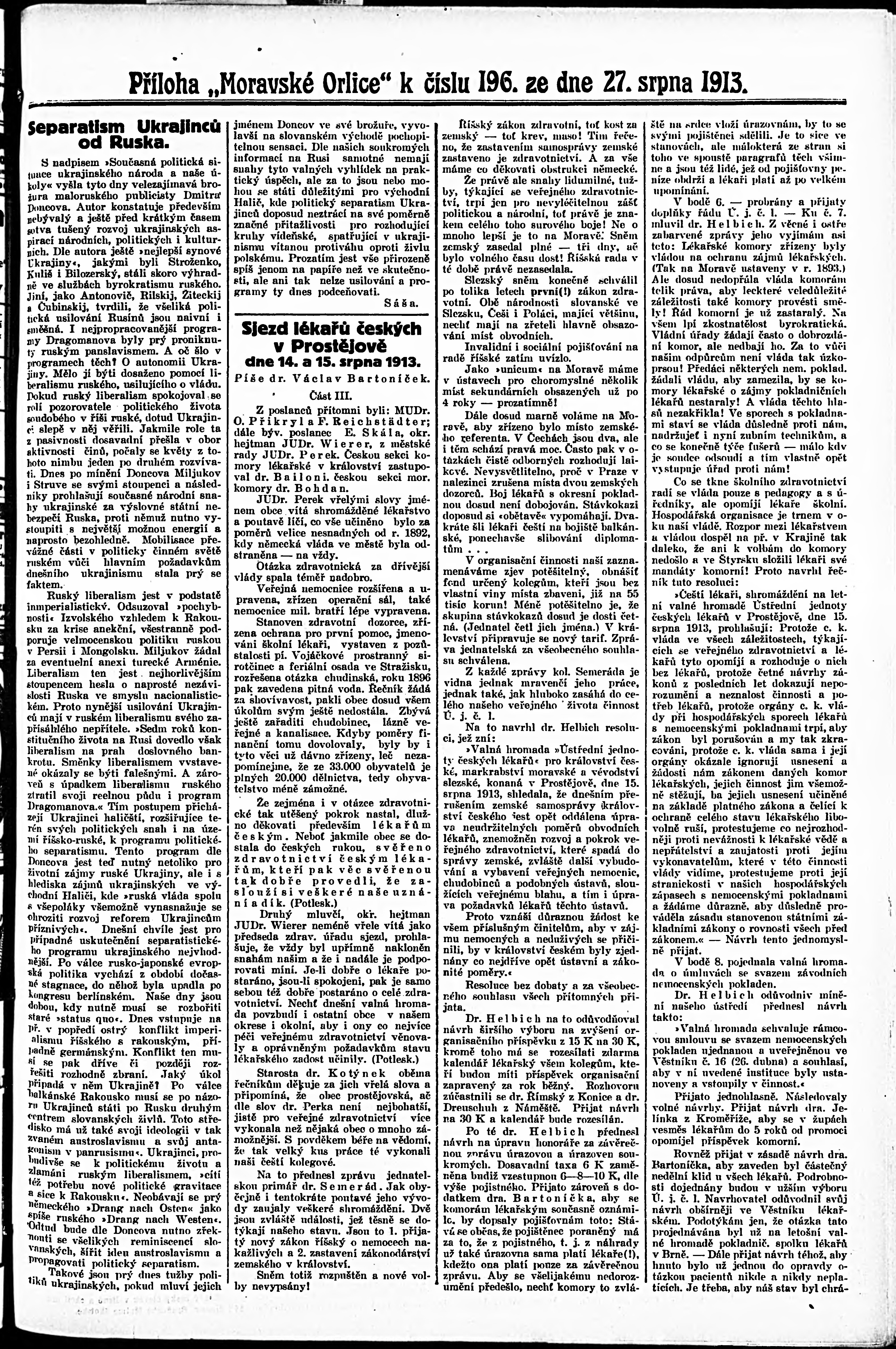 * Datum vydání výtisku: 27.8.1913 Číslo výtisku: 196
