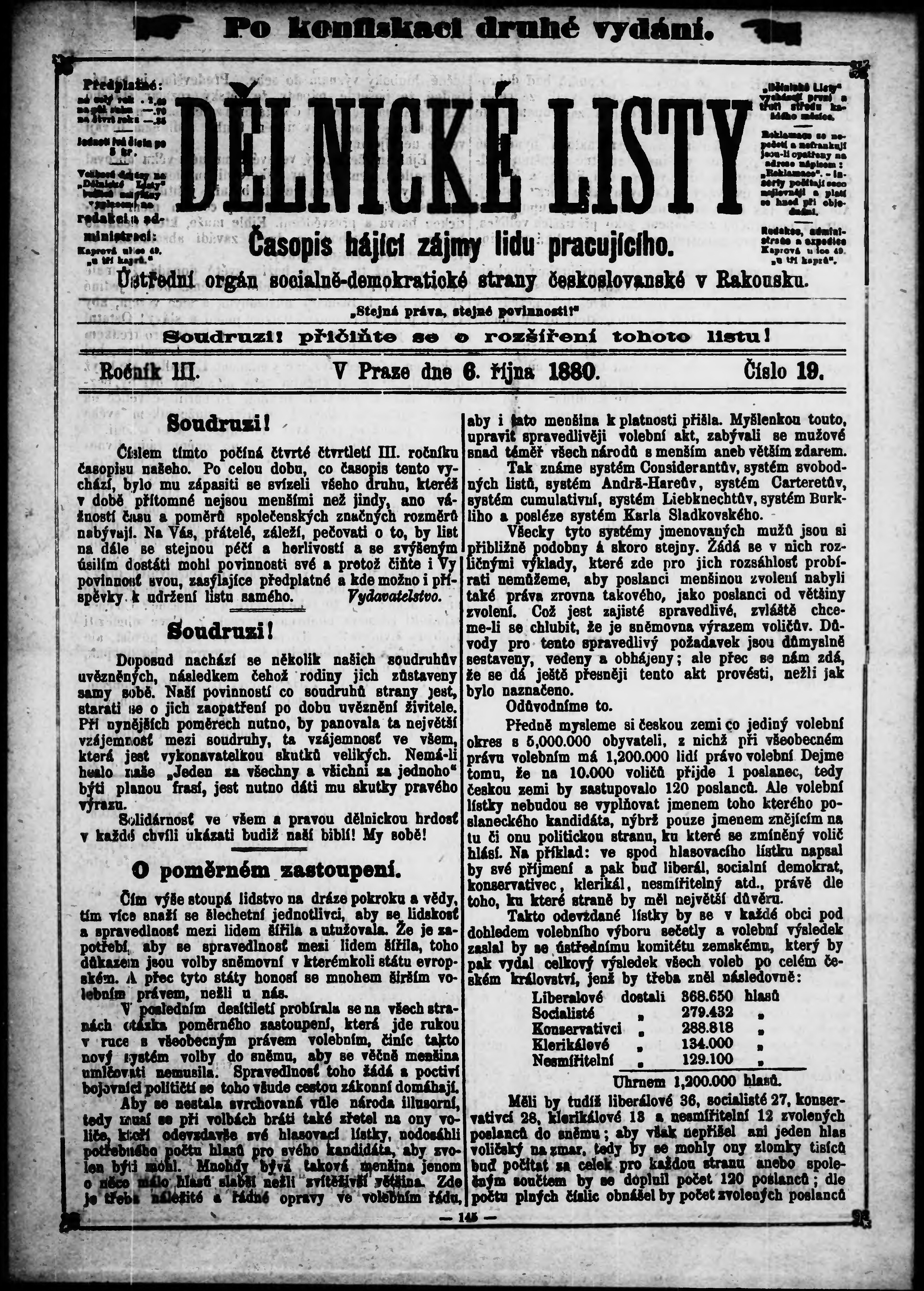 * Datum vydání výtisku: 6.10.1880 Číslo výtisku: 19