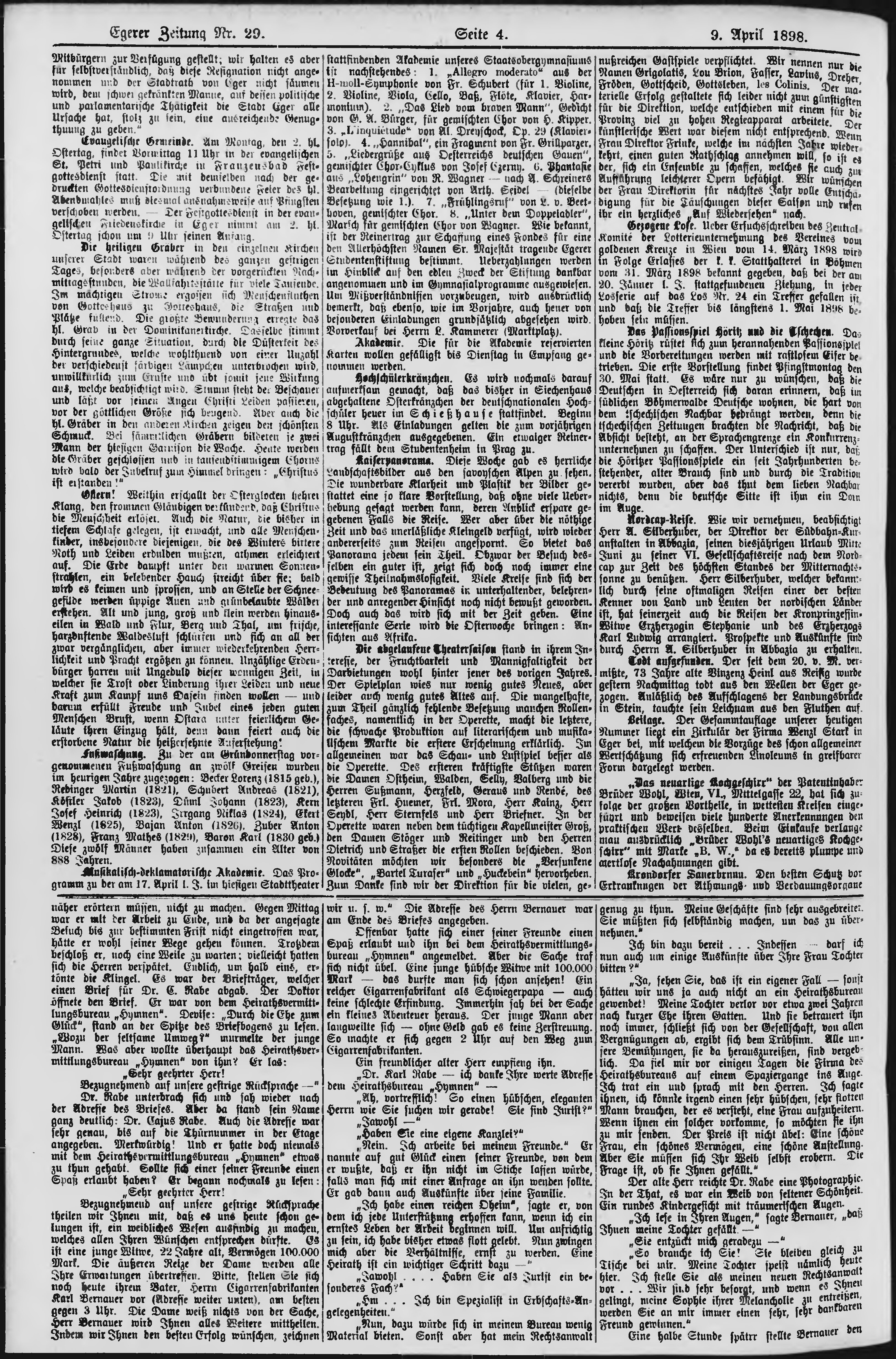 * Datum vydání výtisku: 9.4.1898 Číslo výtisku: 29