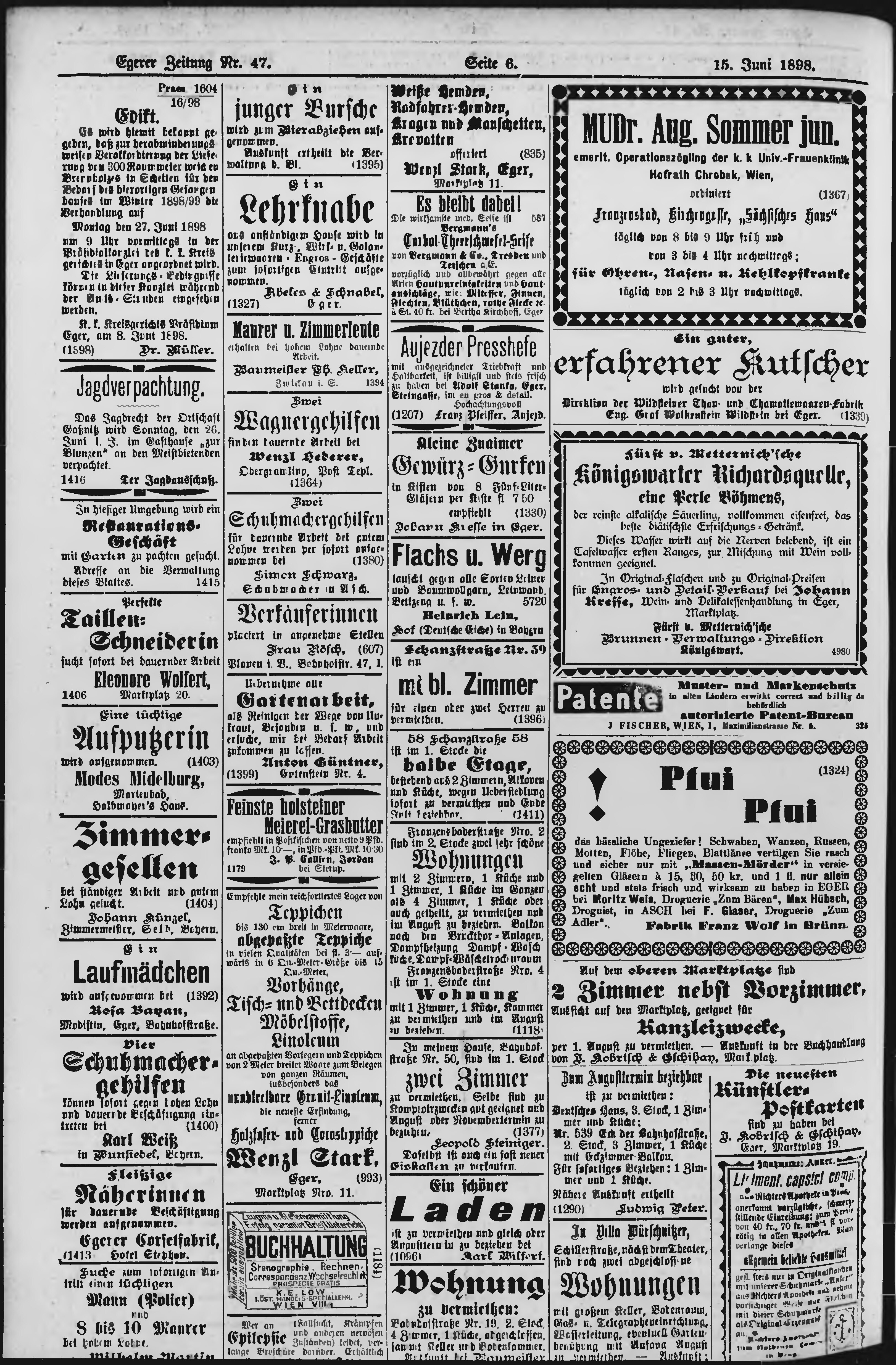 * Datum vydání výtisku: 15.6.1898 Číslo výtisku: 47