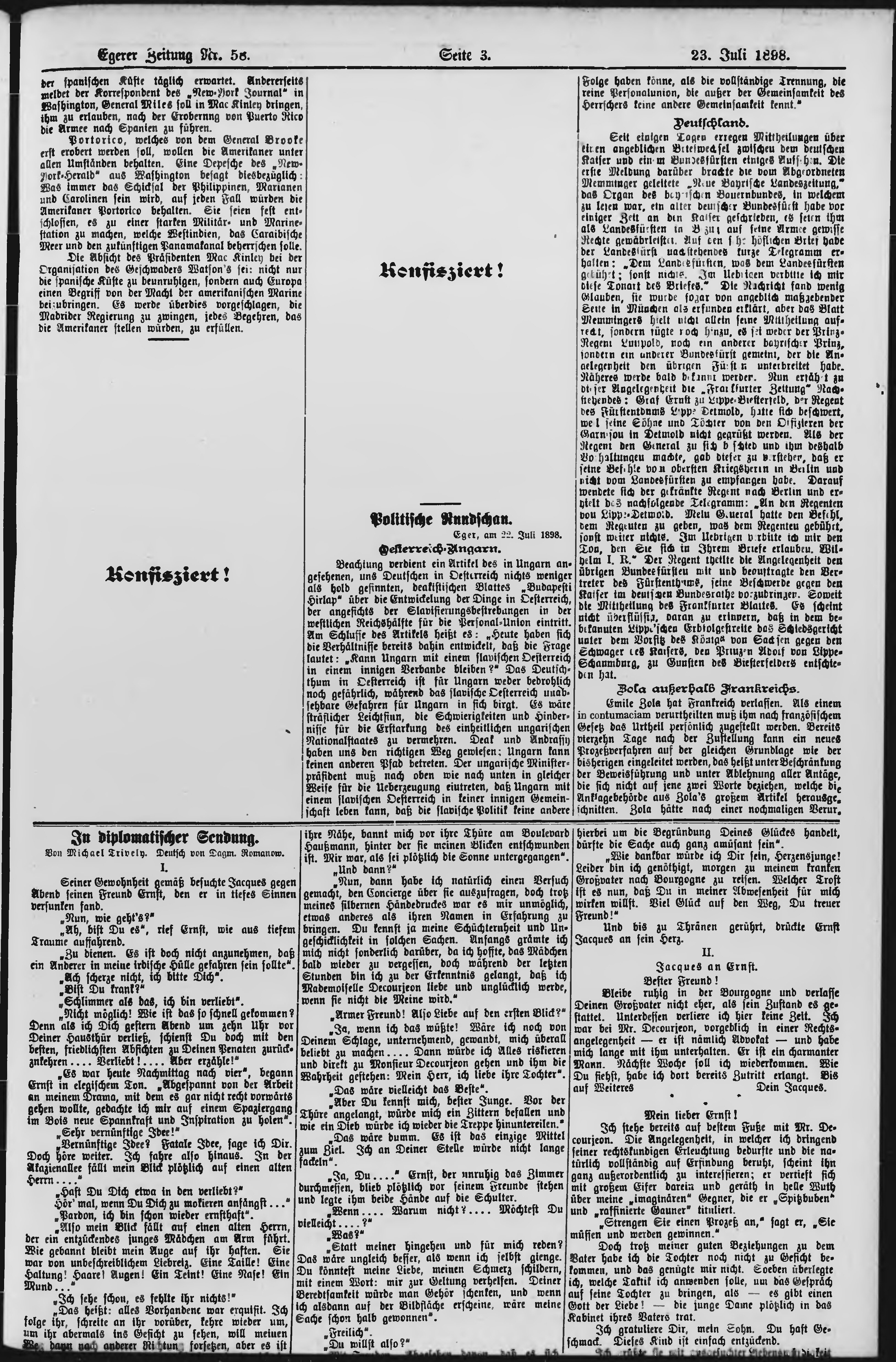 * Datum vydání výtisku: 23.7.1898 Číslo výtisku: 58 Poznámky k výtisku: po konfiskaci druhé vydání;