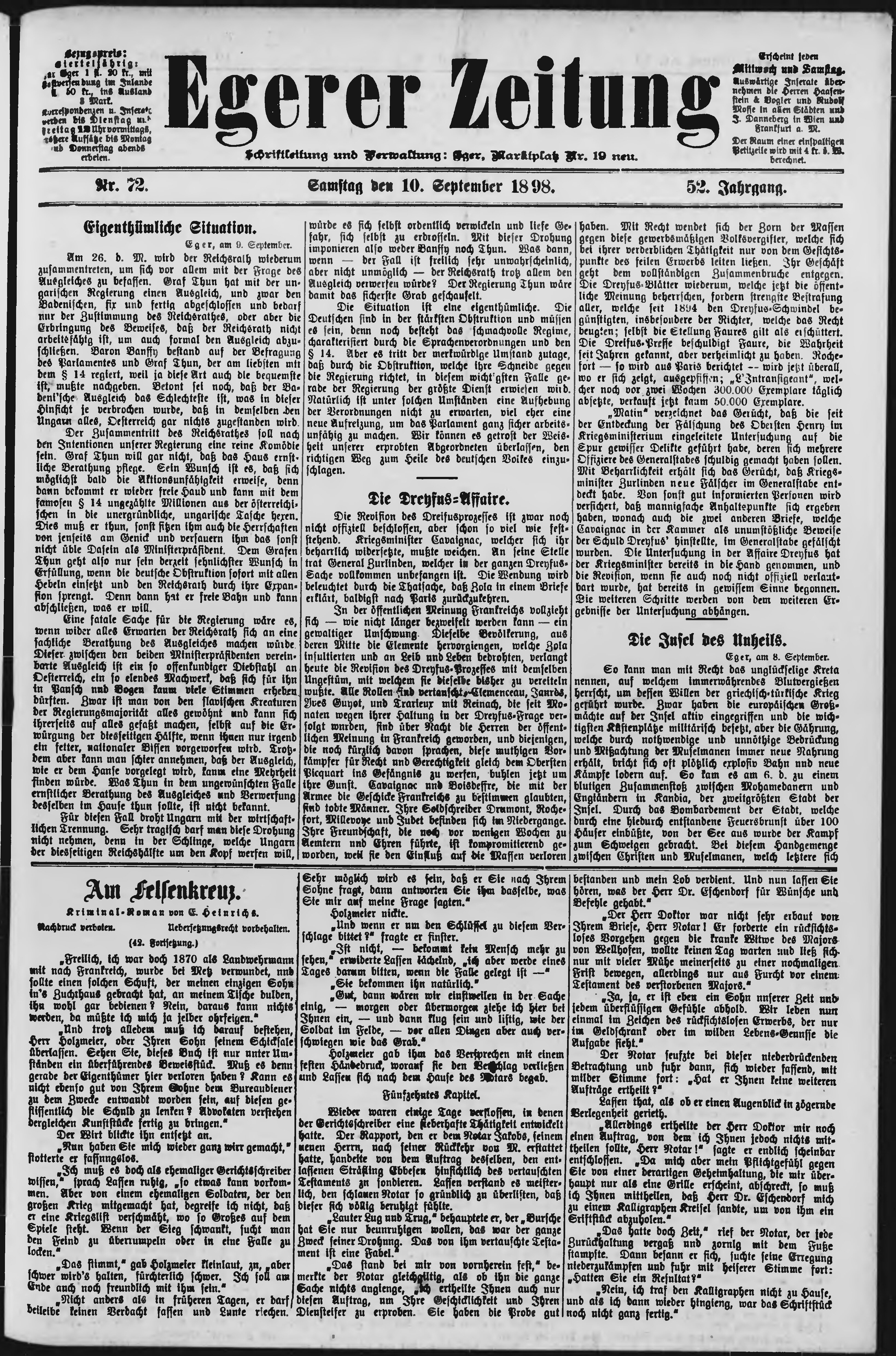* Datum vydání výtisku: 10.9.1898 Číslo výtisku: 72