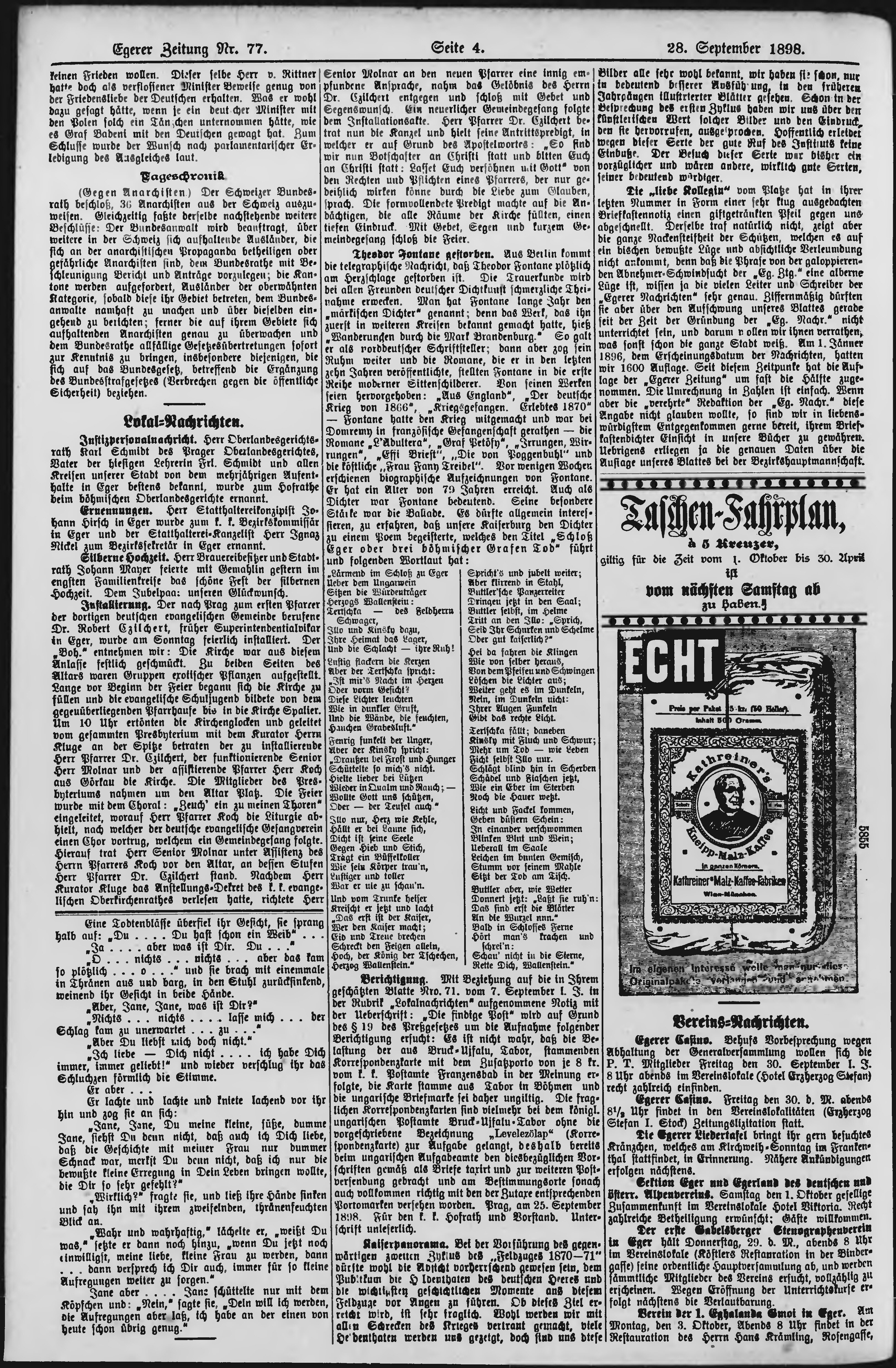 * Datum vydání výtisku: 28.9.1898 Číslo výtisku: 77
