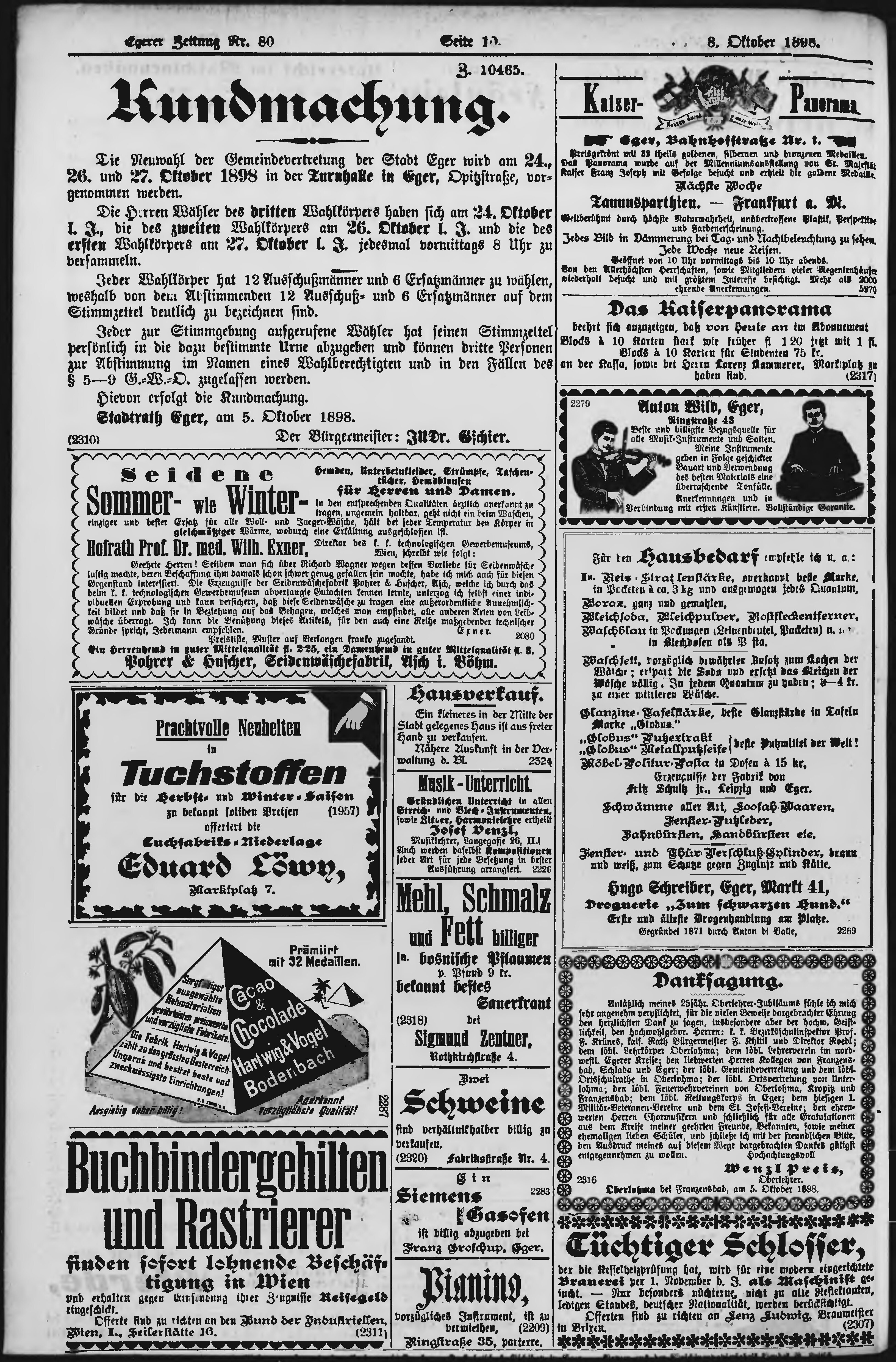 * Datum vydání výtisku: 8.10.1898 Číslo výtisku: 80