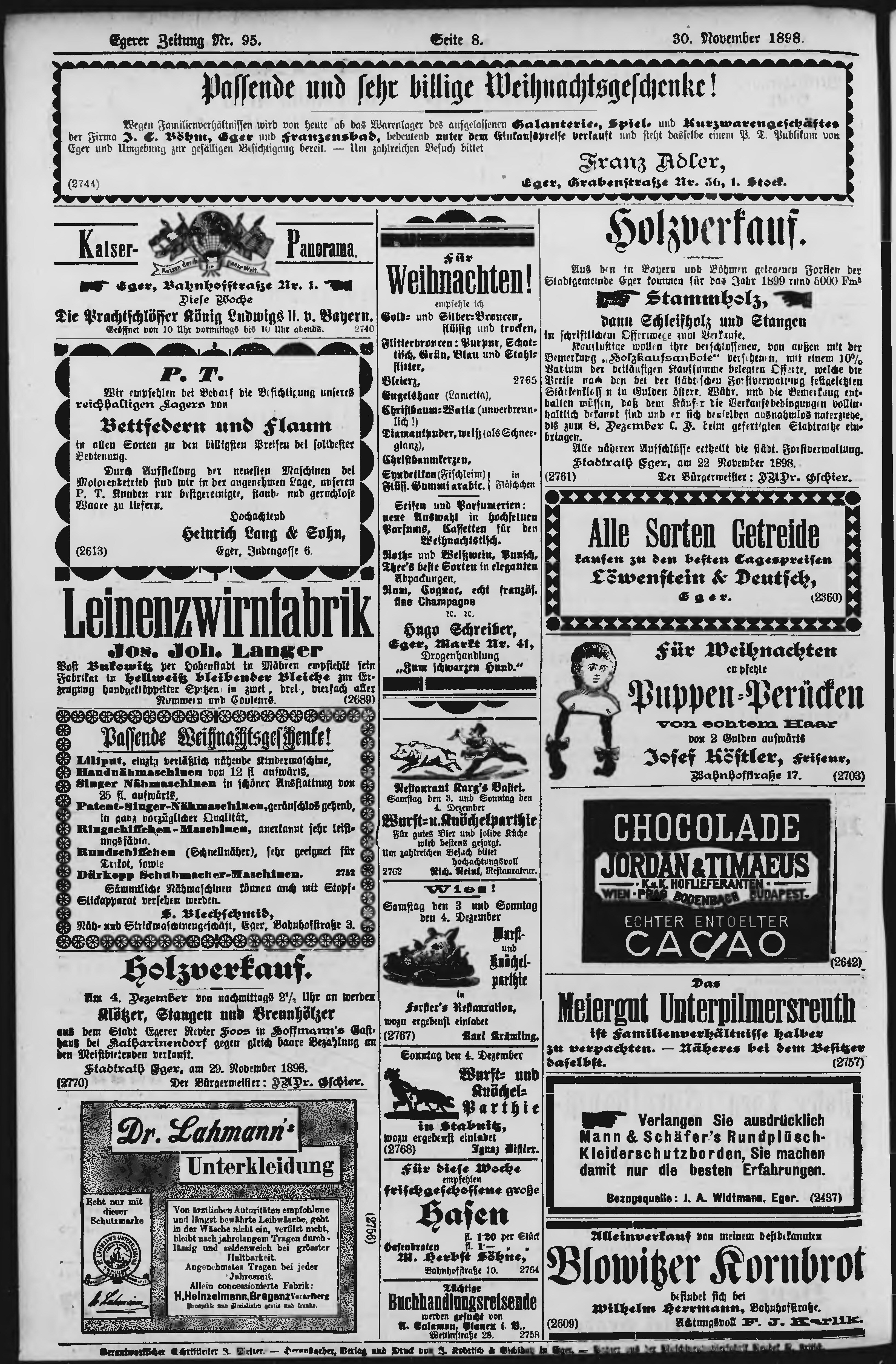 * Datum vydání výtisku: 30.11.1898 Číslo výtisku: 95